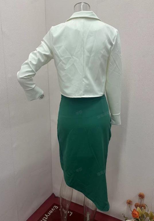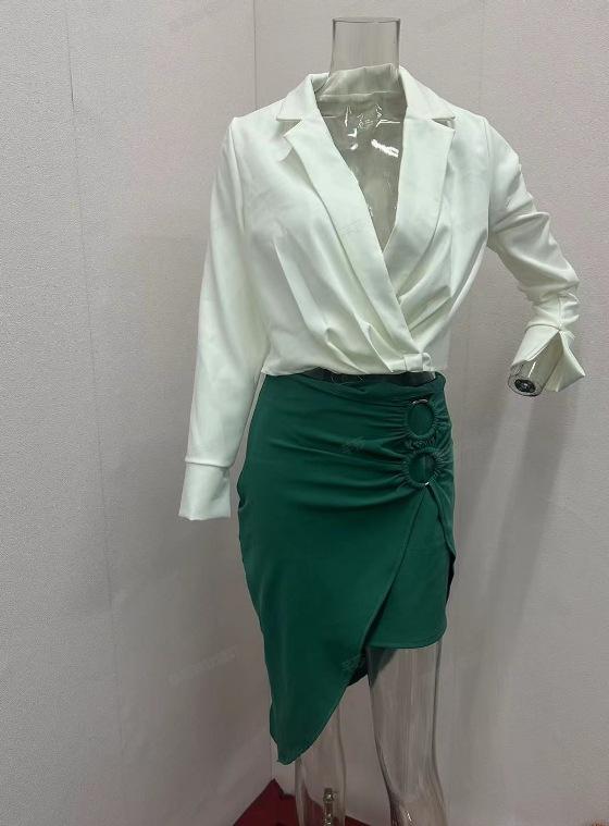 Otoño 2024 Nuevo conjunto de dos piezas de falda y falda de cintura alta de color sólido transfronterizo de Amazon para mujer, Europa y América