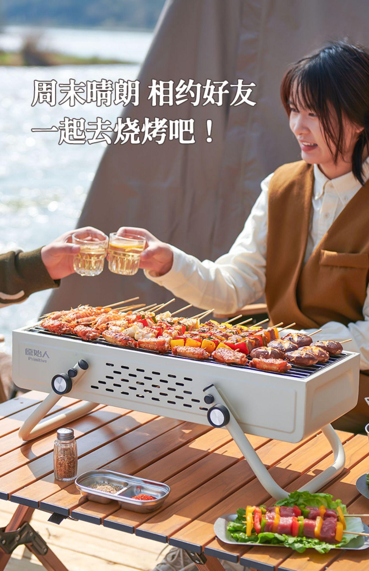 Parrilla de barbacoa para acampar al aire libre, estilo Ins, estufa de barbacoa para el hogar, creativa, sin humo, parrilla de carbón plegable portátil