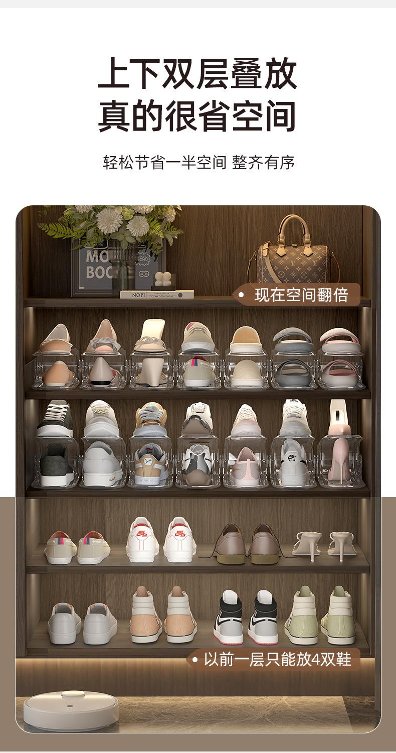 Zapatero ajustable de doble capa con almacenamiento integrado, ahorra espacio, sencillo y transparente para el hogar.
