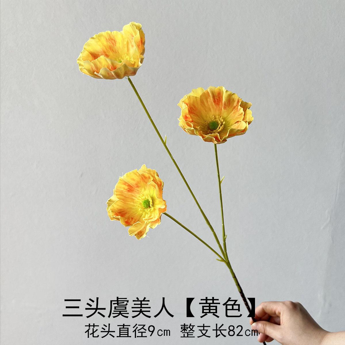 Multi-headed yingluo poppy-yellow, 3d three-headed foxtail lily-yellow, Three-head lily of the valley rose - y...