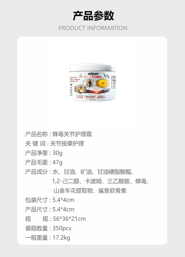 Crema para el Cuidado Articular con Veneno de Abeja Wiyun Cuidado Suave Articulación Columna Cervical Columna Lumbar Articulación de la Muñeca Dolor Crema para Masaje
