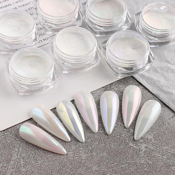 Venta al por mayor de polvos de luz de luna para uñas, espejo mágico Aurora, polvos de luz de luna, color mágico, polvo de concha para uñas, polvo de brillo transparente para uñas con hielo.