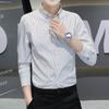 Camisa a rayas de primavera 2021 para hombre, informal, de negocios, de manga larga, ajustada, juvenil, sin planchado