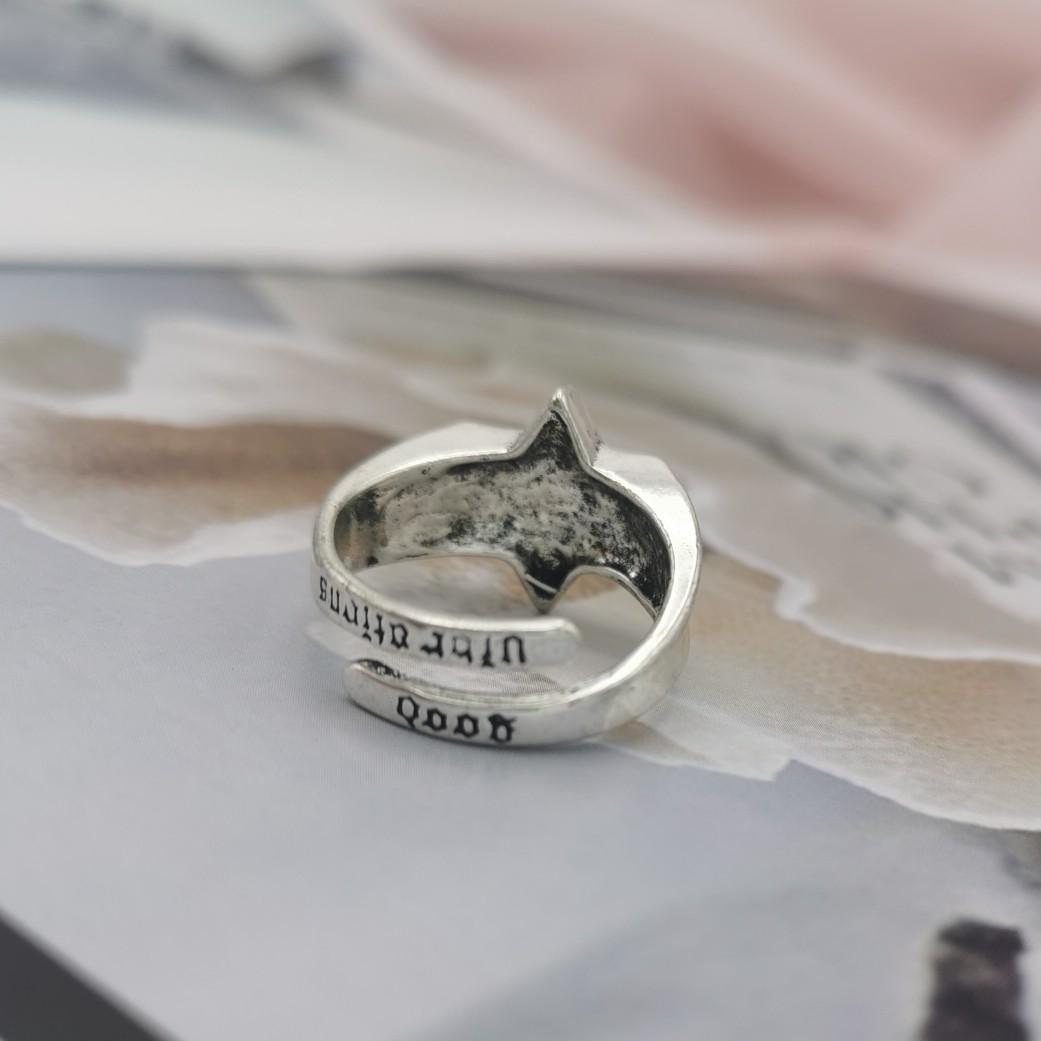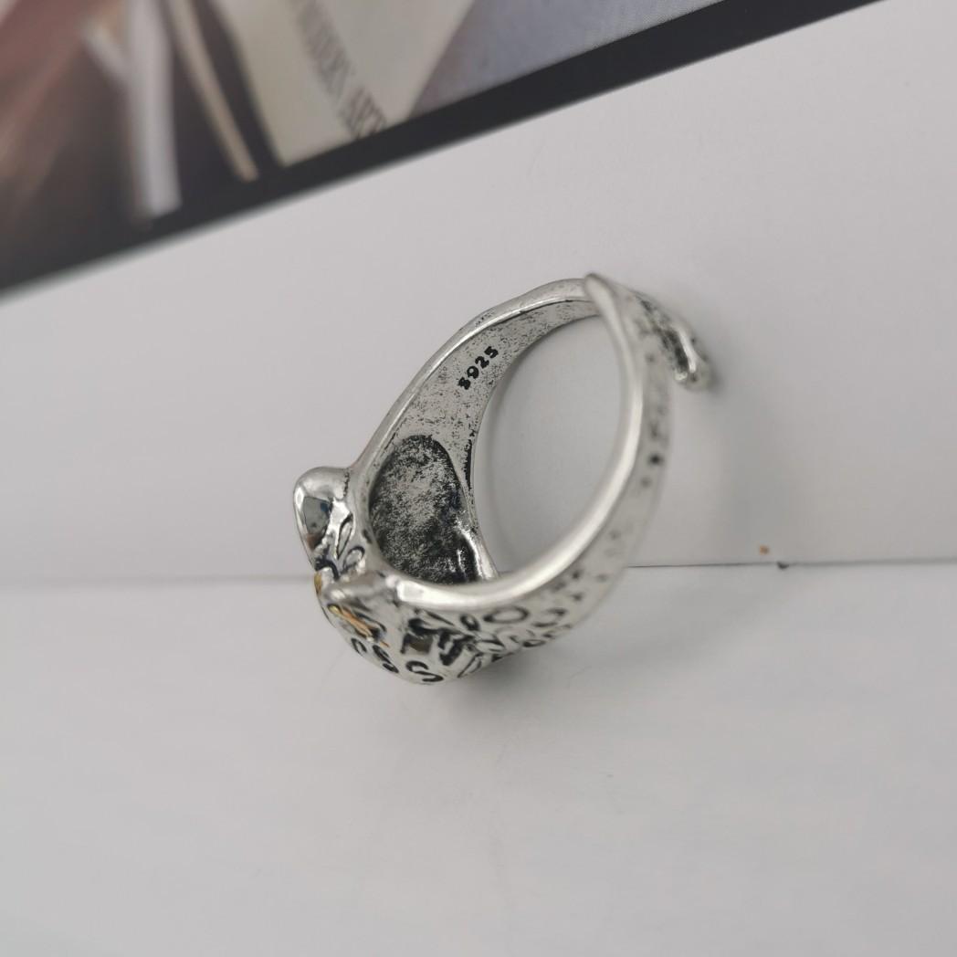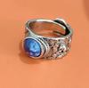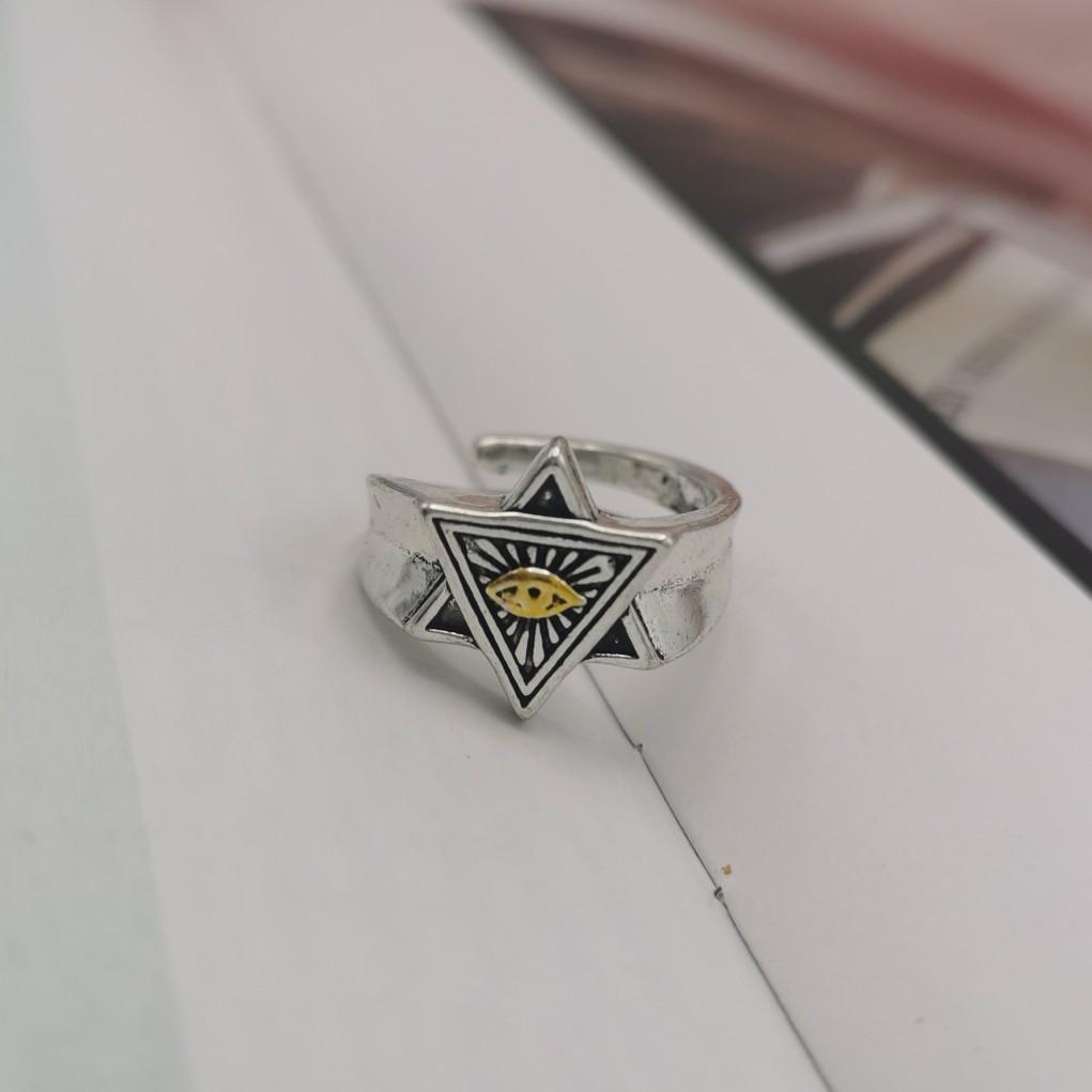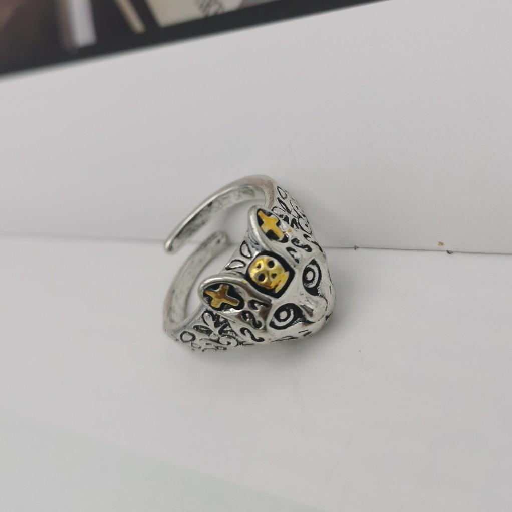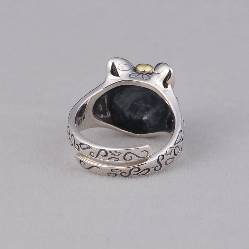 Anillo abierto vintage de plata tailandesa tridimensional con diseño de gatito personalizado en dos colores, con forma de ojo de Dios, estilo hip hop para hombre, con estrella de seis puntas.