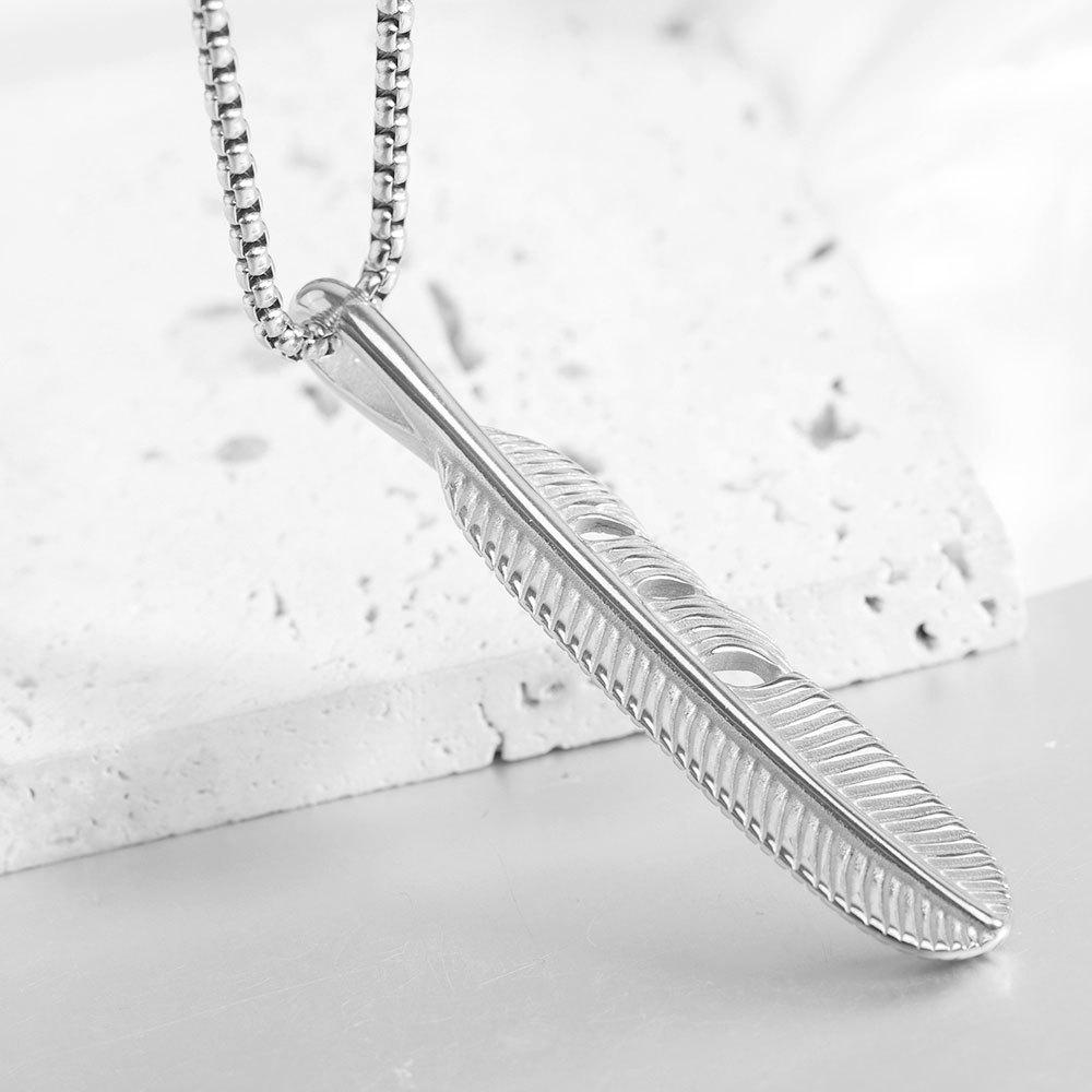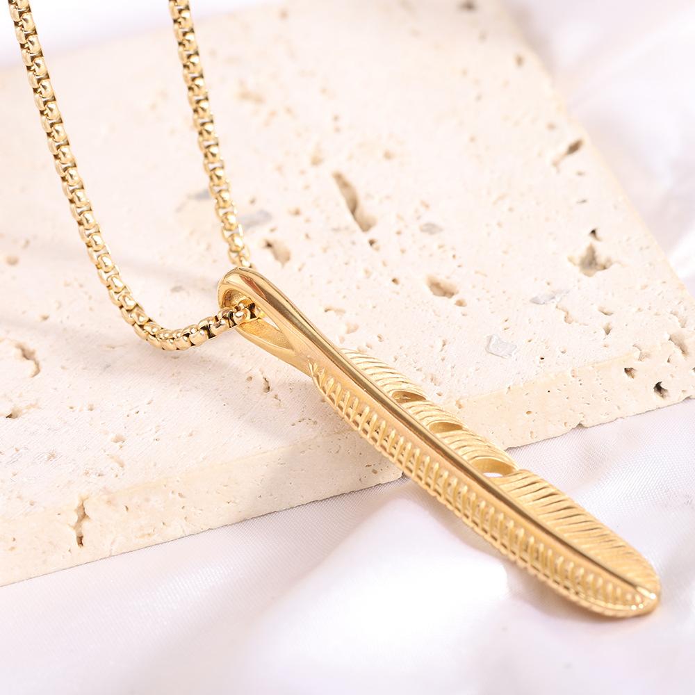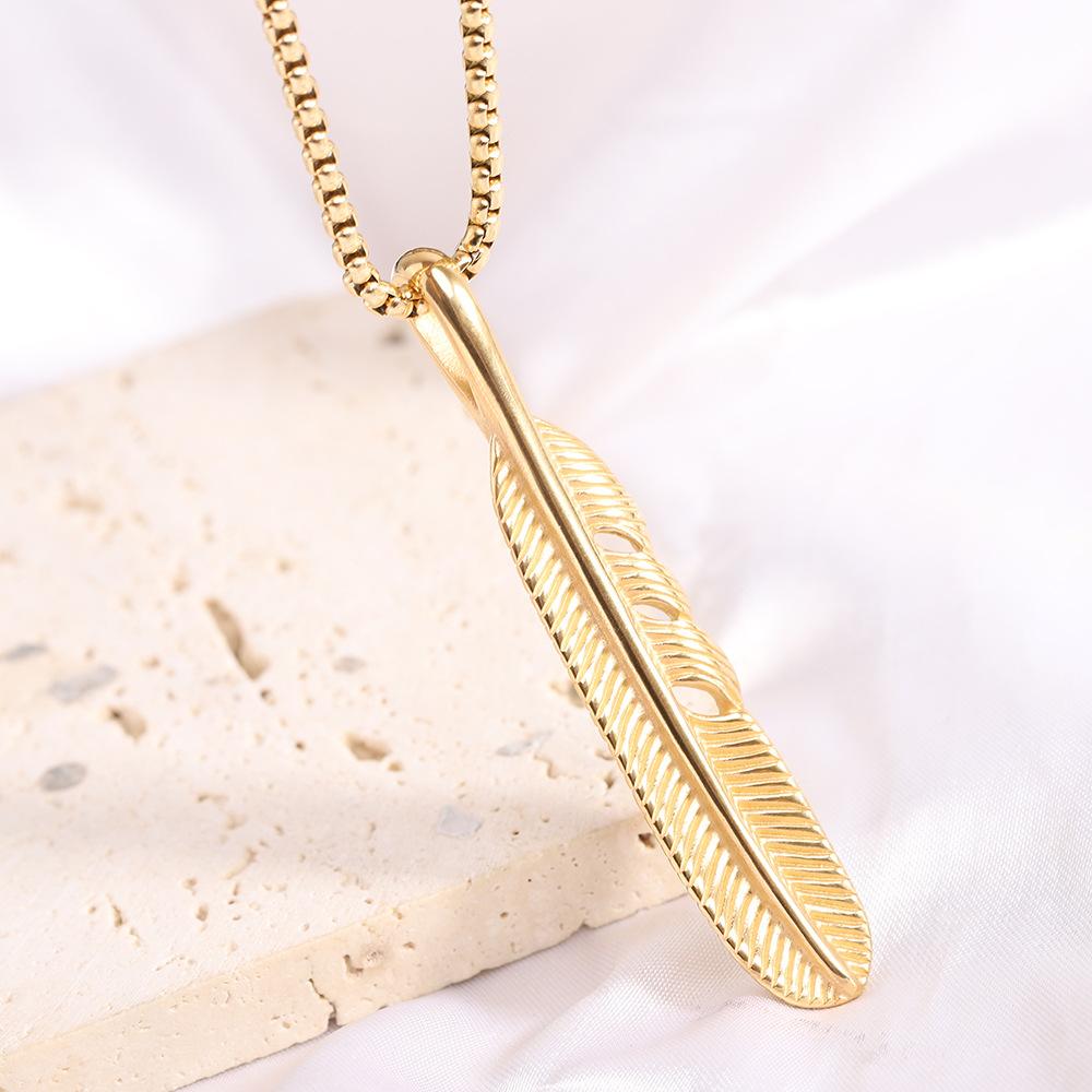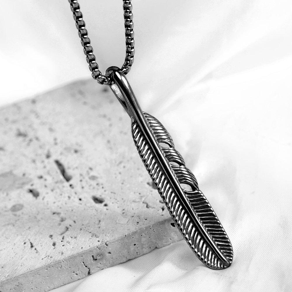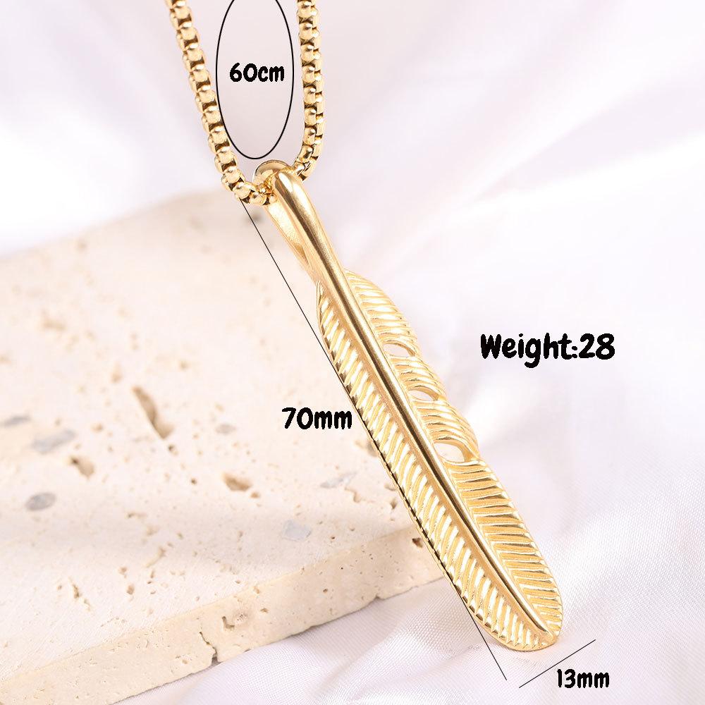 Amazon Europeo y Americano Ventas Calientes Nuevo Collar Hip-Hop de Acero Inoxidable de 70 mm con Pluma Libre Cadena Clavícula Venta al por Mayor para Mujeres