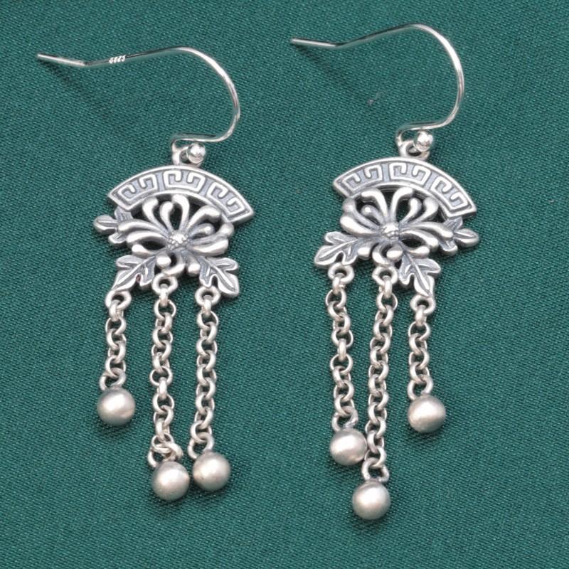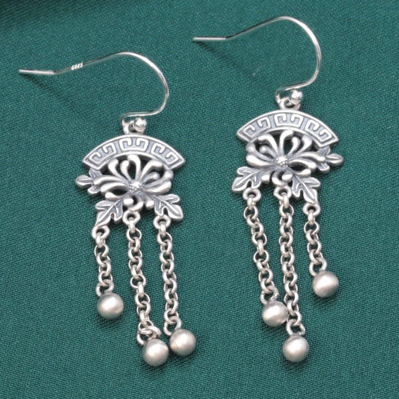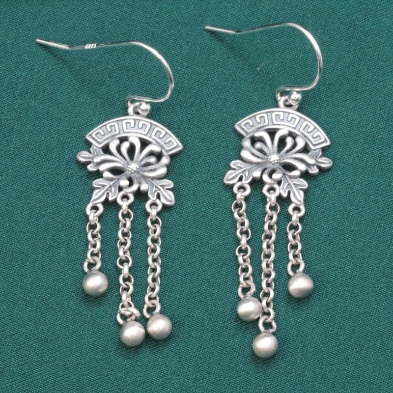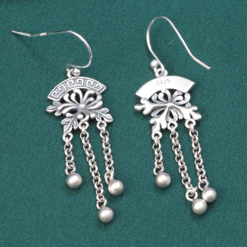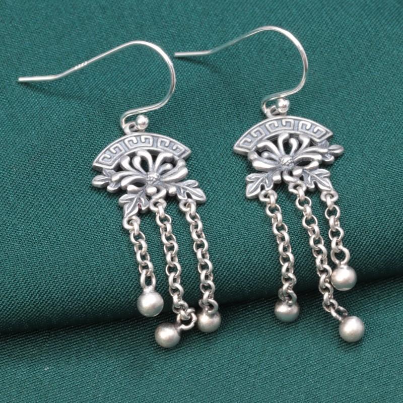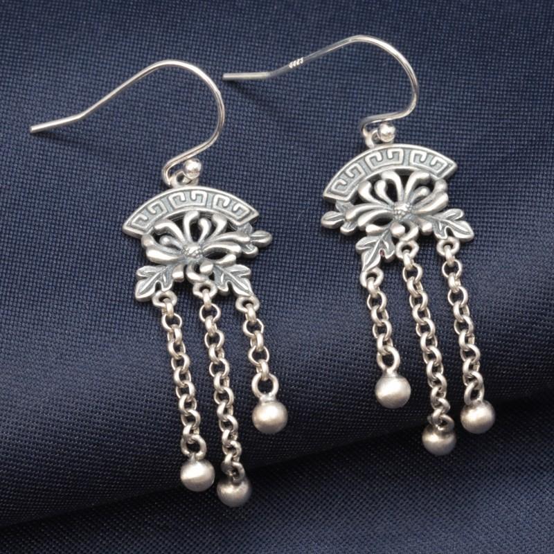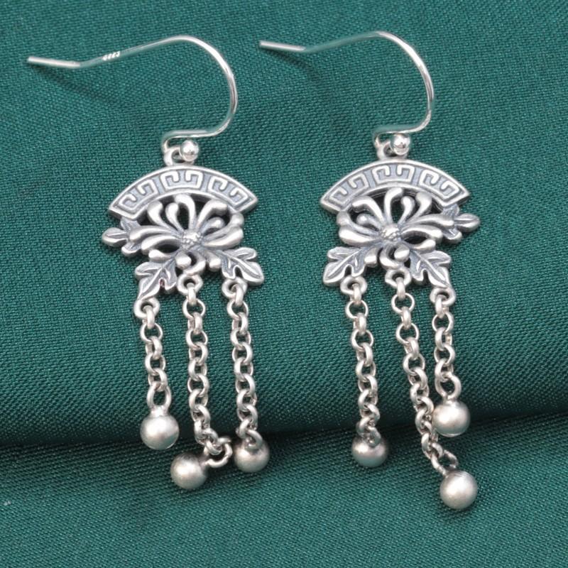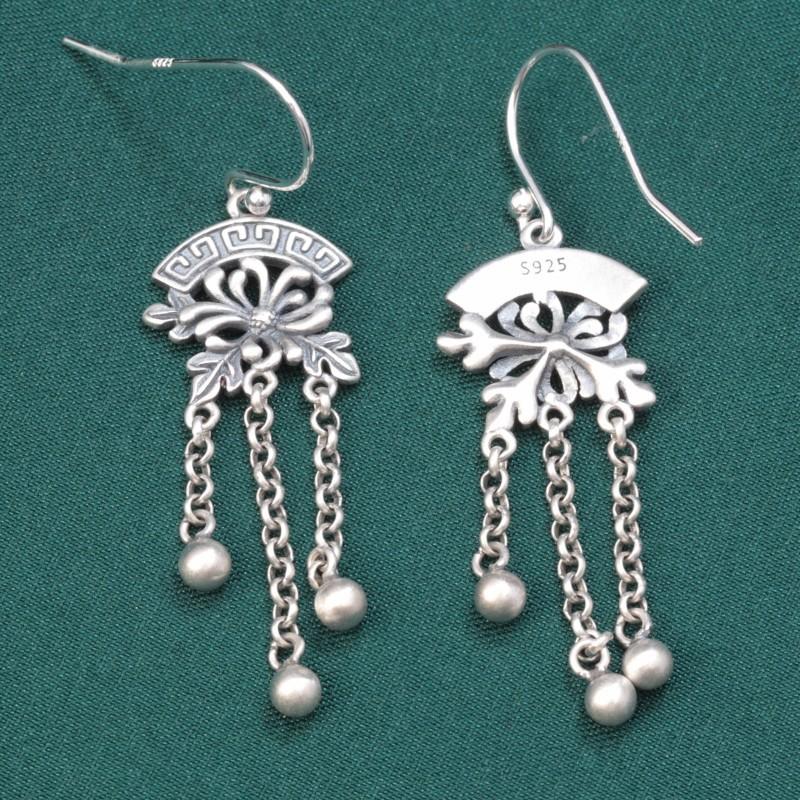 Compra Pendientes de plata de ley S925 con borlas y pequeñas flores, estilo étnico, largos y desgastados, joyería al por mayor al por mayor en Joom.pro