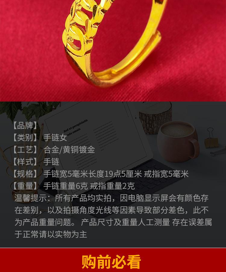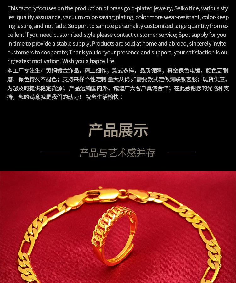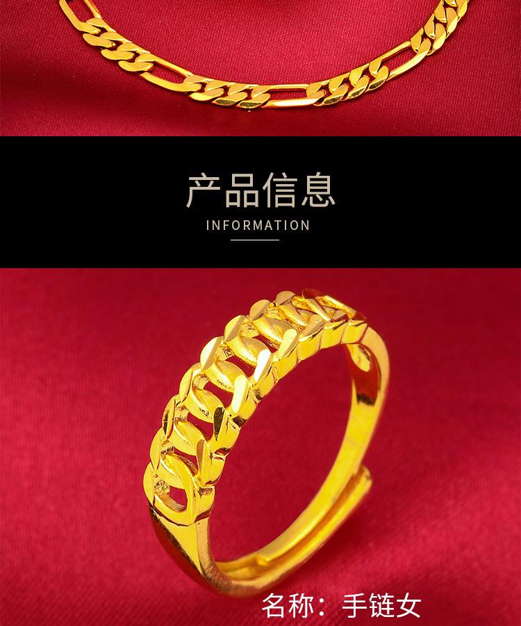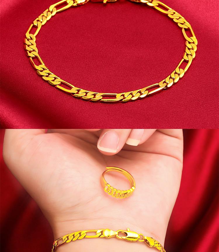 Pulsera plana con cierre de langosta para mujer, edición de anillo de trigo, pulsera de cadena, joyería de oro y arena de Vietnam al por mayor