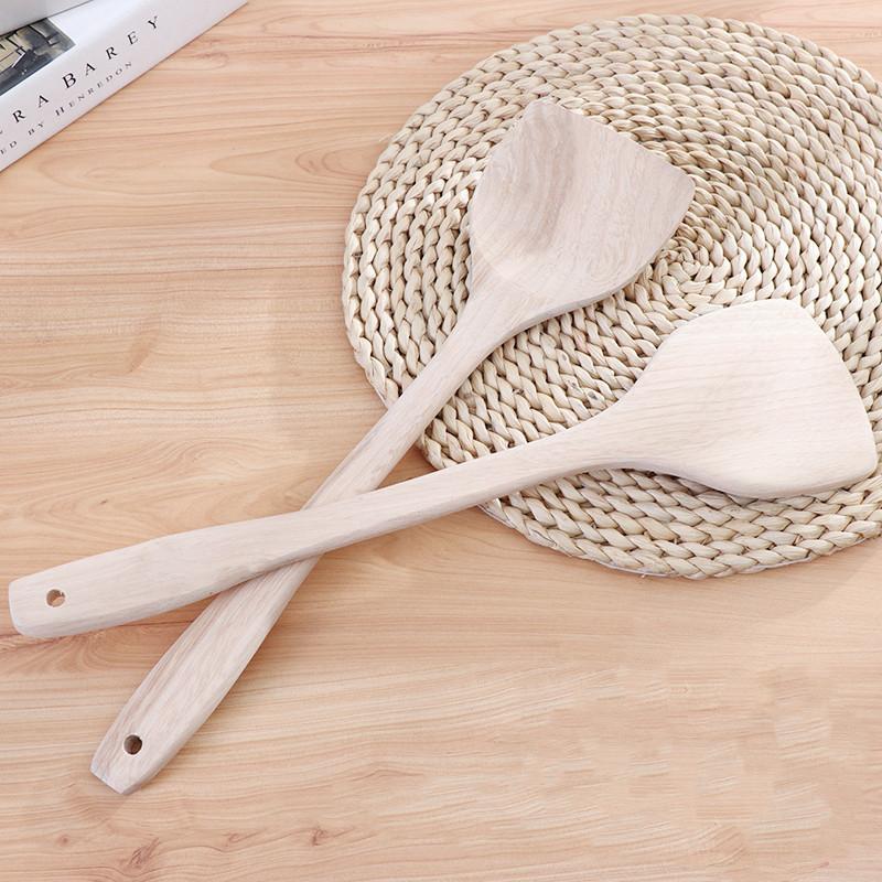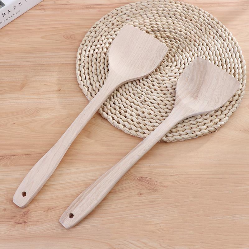 Espátula de Madera Extendida de 39cm con Mango Largo Natural para Cocinar, Espátula de Madera, Cuchara de Madera, Cuchara para Arroz, Espátula para Sartén Antiadherente, Utensilio de Cocina