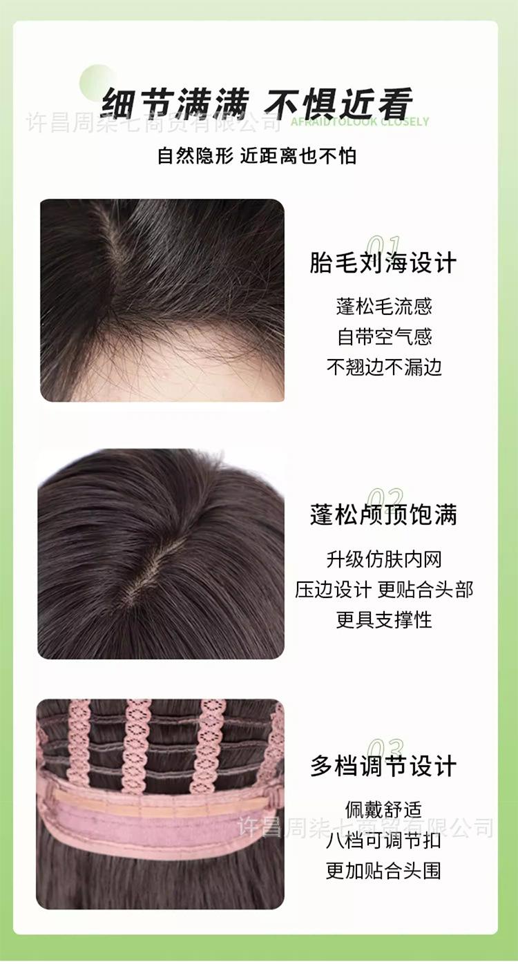| | Peluca con flequillo lateral para mujer, cabello natural simulado, flequillo falso de aire, reemplazo de cabello, parte superior de la cabeza alta, peluca con cubierta de cabello blanco | | ¥10.60 | | 143 artículos vendidos | | | | | Peluca para mujer, cabello largo, frente con encaje, cobertura total en la cabeza, parte media, ondas grandes, fina, simulación natural, peluca de cabello largo y rizado, conjunto | | ¥49.00 | | 145 artículos vendidos | | | | | No es necesario usar una redecilla para el cabello, peluca femenina, pieza de reemplazo de cabeza, cubierta completa para la cabeza, raya en medio, cabello largo y liso, aumenta el volumen del cabello, conjunto de peluca | | ¥19.80 | | 30 artículos vendidos | | |