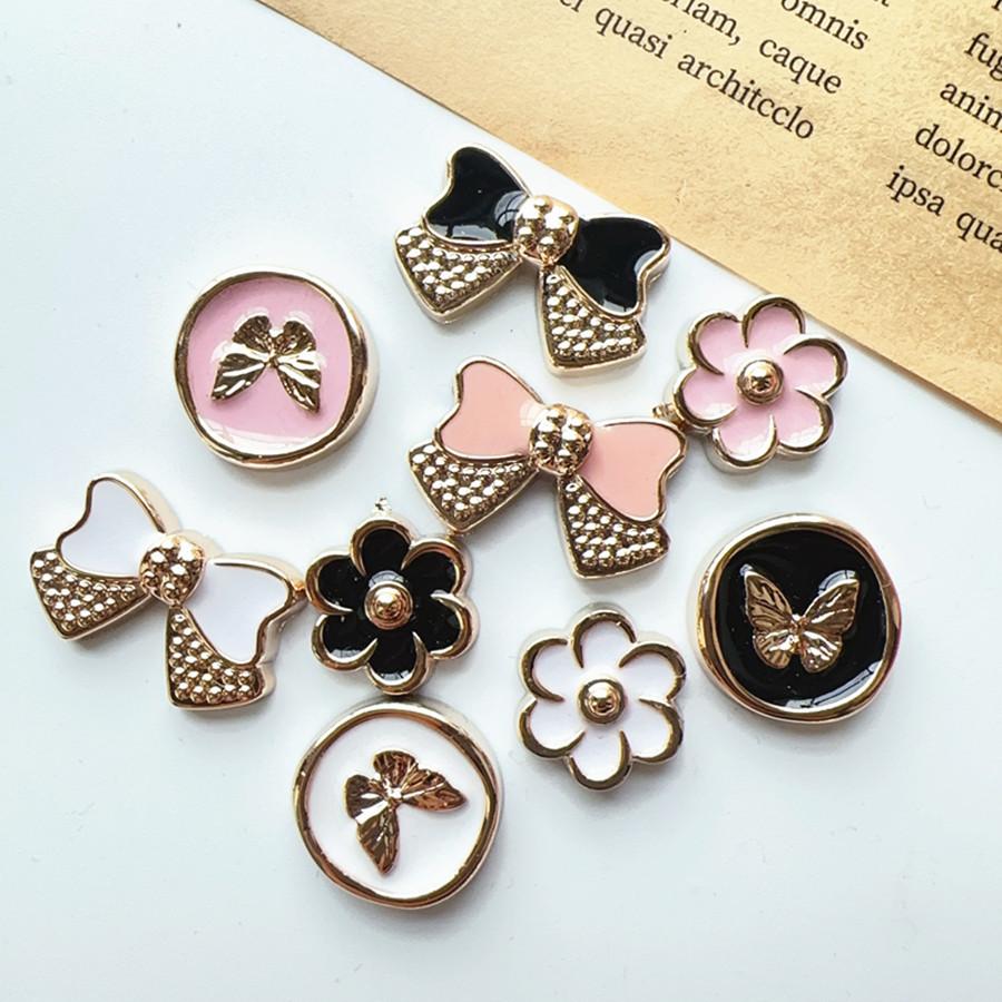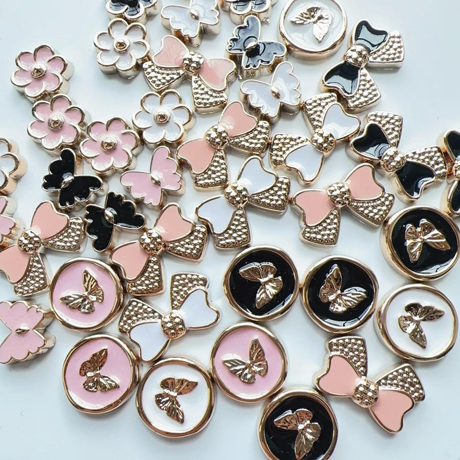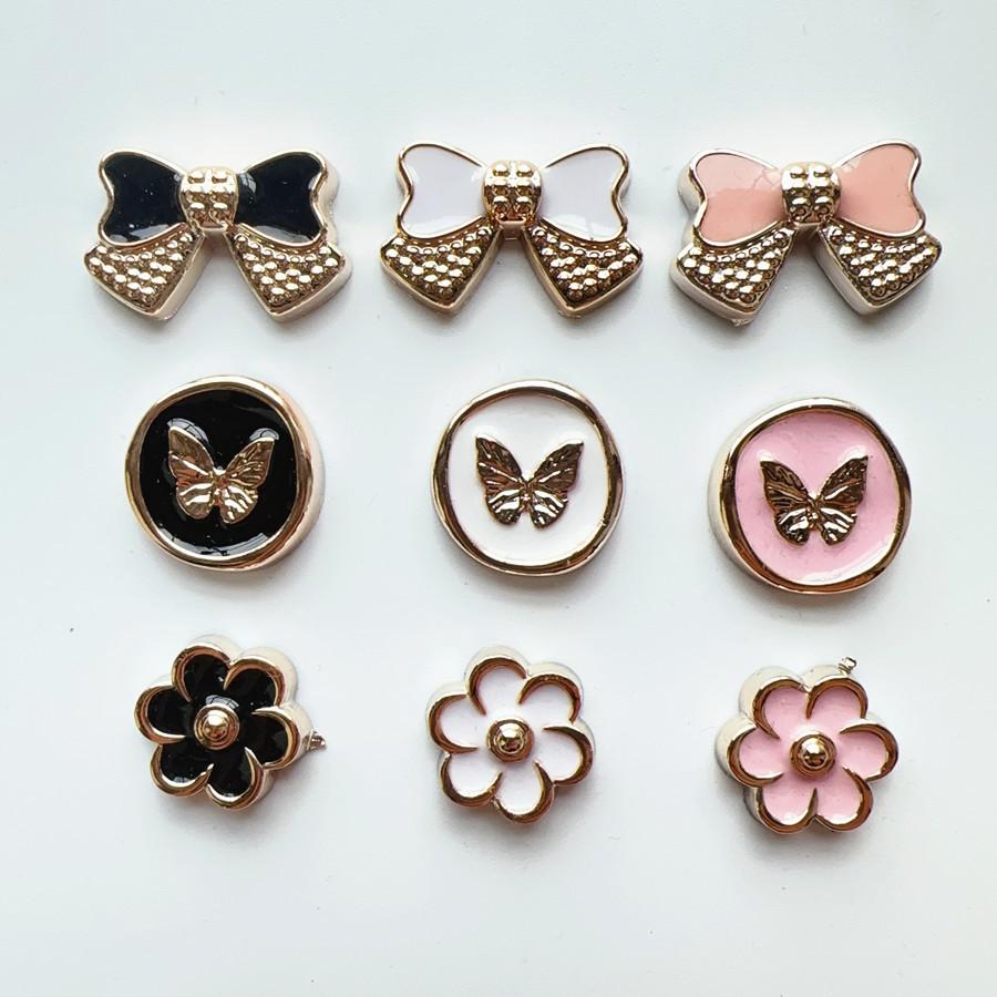 Nuevo estilo estilo fragante pequeño blanco y negro rosa mariposa flor zapatos de agujeros cruzados material de bolsa horquilla accesorios de joyería diy lote