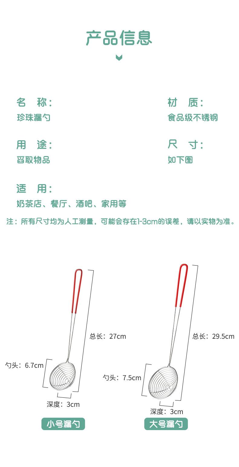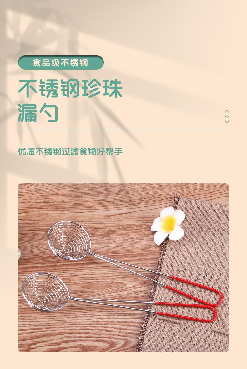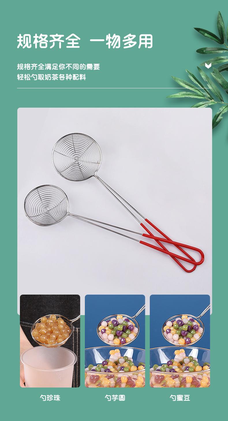 Colador de perlas de acero inoxidable mango rojo Taro redondo perla estallada cuchara redonda suministros para tienda de té con leche cuchara para olla caliente red profunda pesca