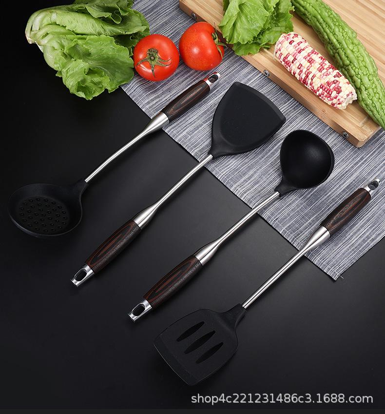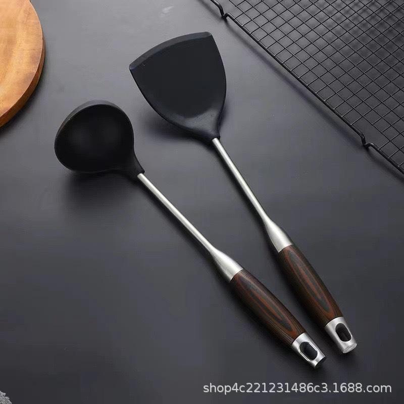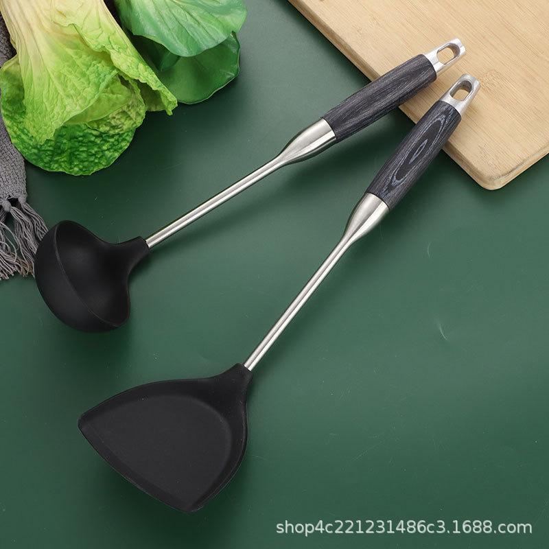 Compra Espátula de silicona de acero inoxidable 304, antiadherente, color negro, mango de madera, apta para uso alimentario, resistente a altas temperaturas, para cocina. al por mayor en Joom.pro