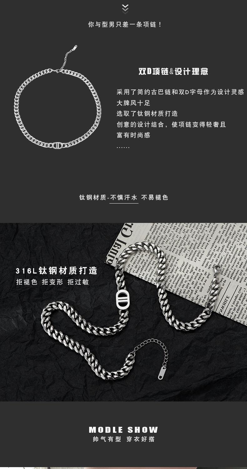Collar Doble D para Hombre Diseño Nicho Hip-Hop de Alta Gama Cadena de Acero al Titanio Marca de Moda para Hombre Elegante Versátil Accesorios para Sudadera