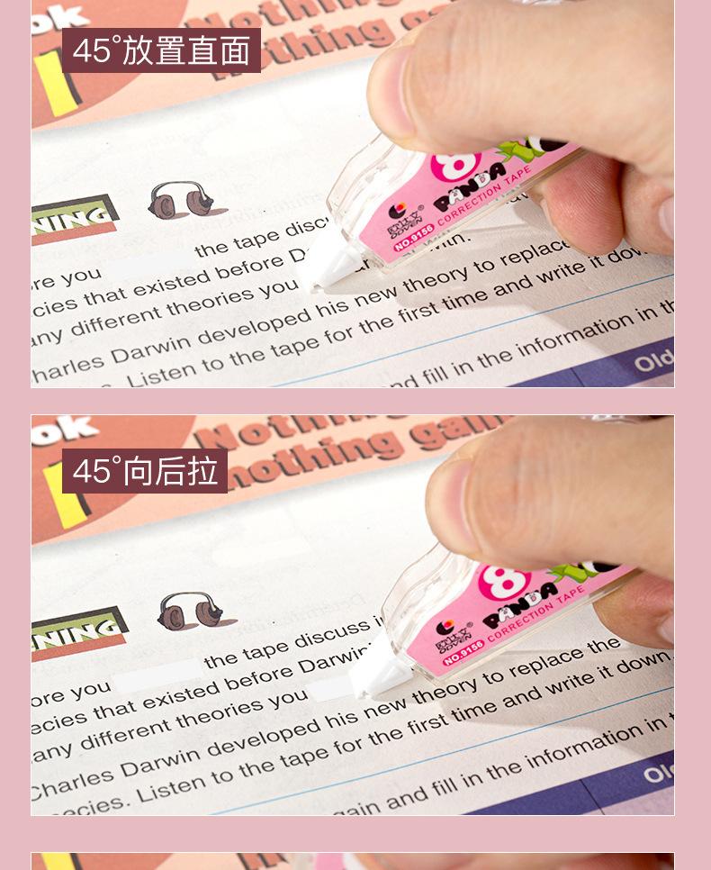 Cinta correctora con forma de panda, 4 en 1, de gran capacidad, ideal para estudiantes de primaria.