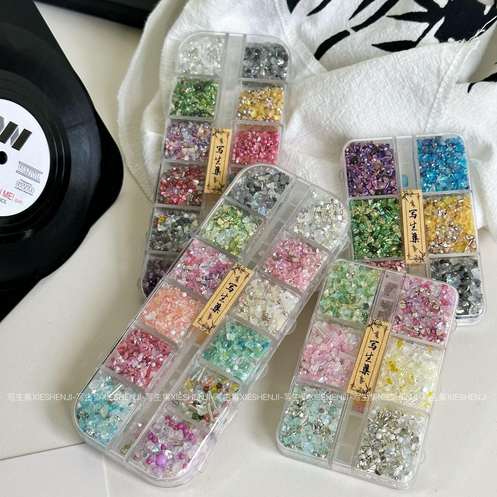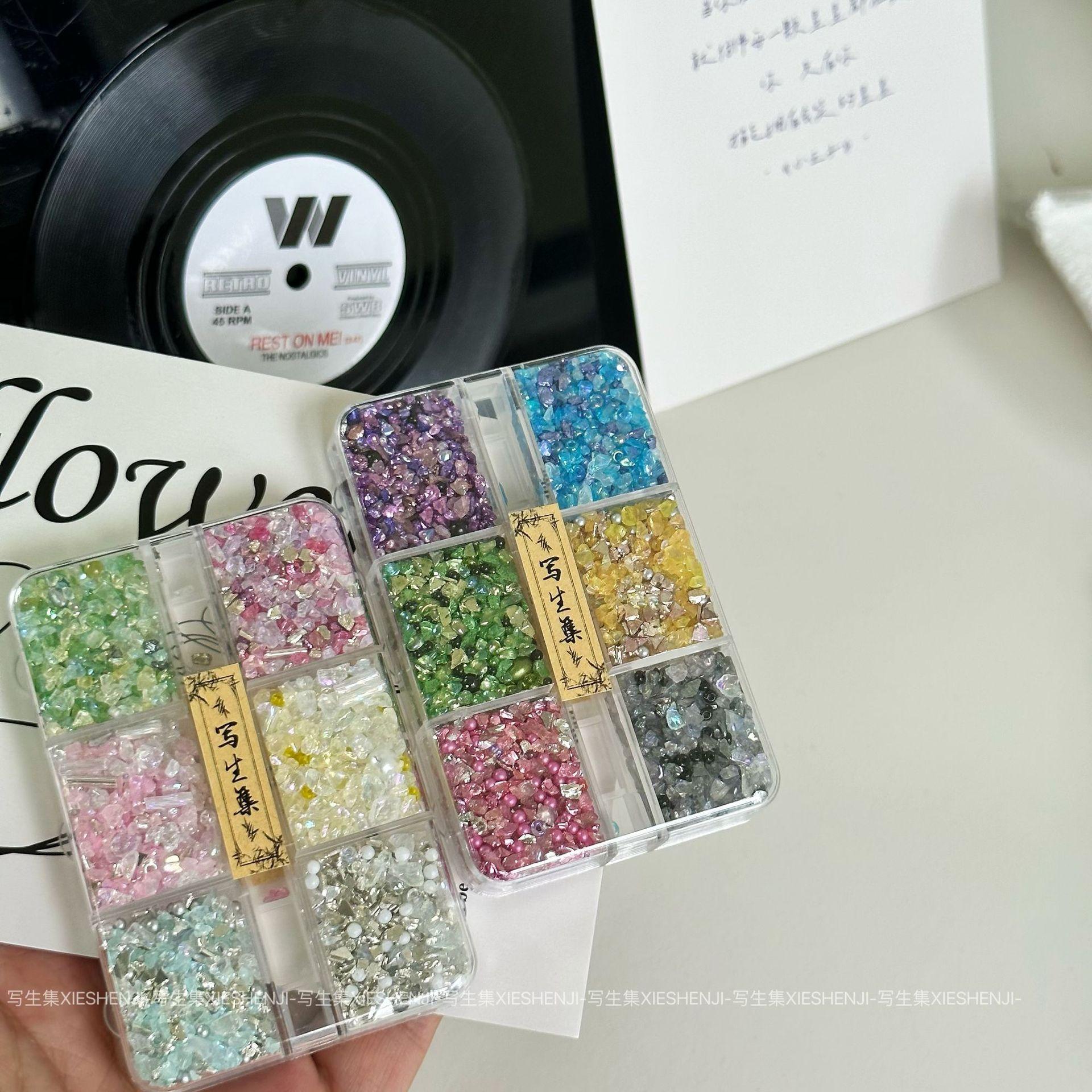 Nueva grava para uñas, tormenta de metal, mezcla a granel, bricolaje, arte de uñas, cáñamo, decoración hecha a mano, grava de color mágico, caliente