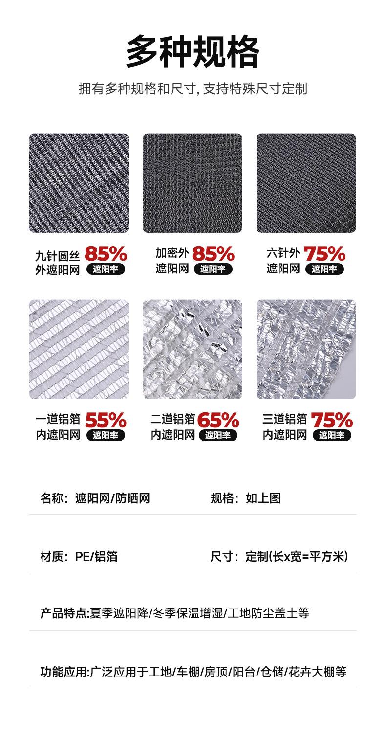 85% nine-pin round wire outer shade net, 85% encryption round wire outer sunshade net, 55% aluminum foil inner...