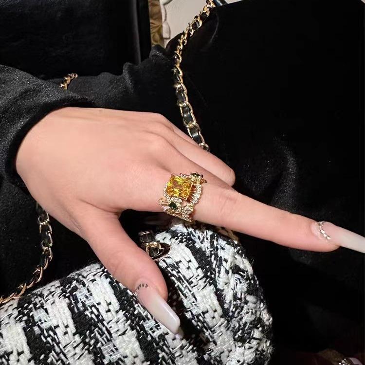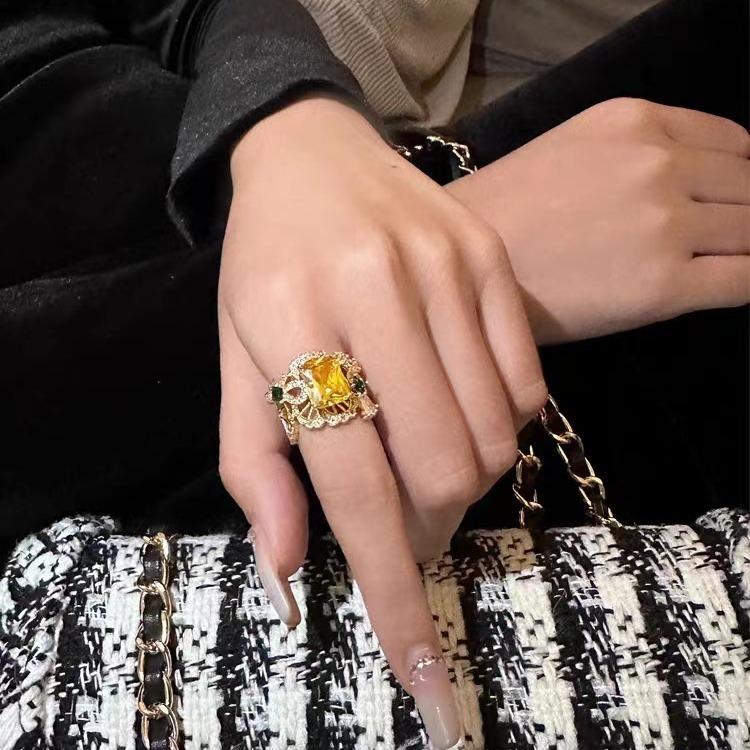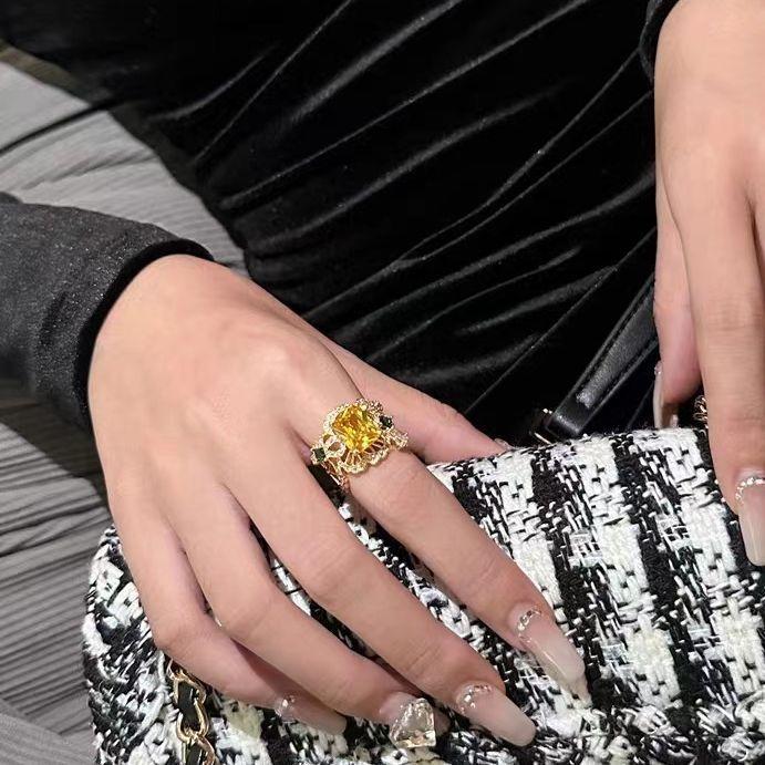 Temperamento europeo y americano moda diseño único hueco circonita micro delicado alto sentido anillo abierto anillo al por mayor