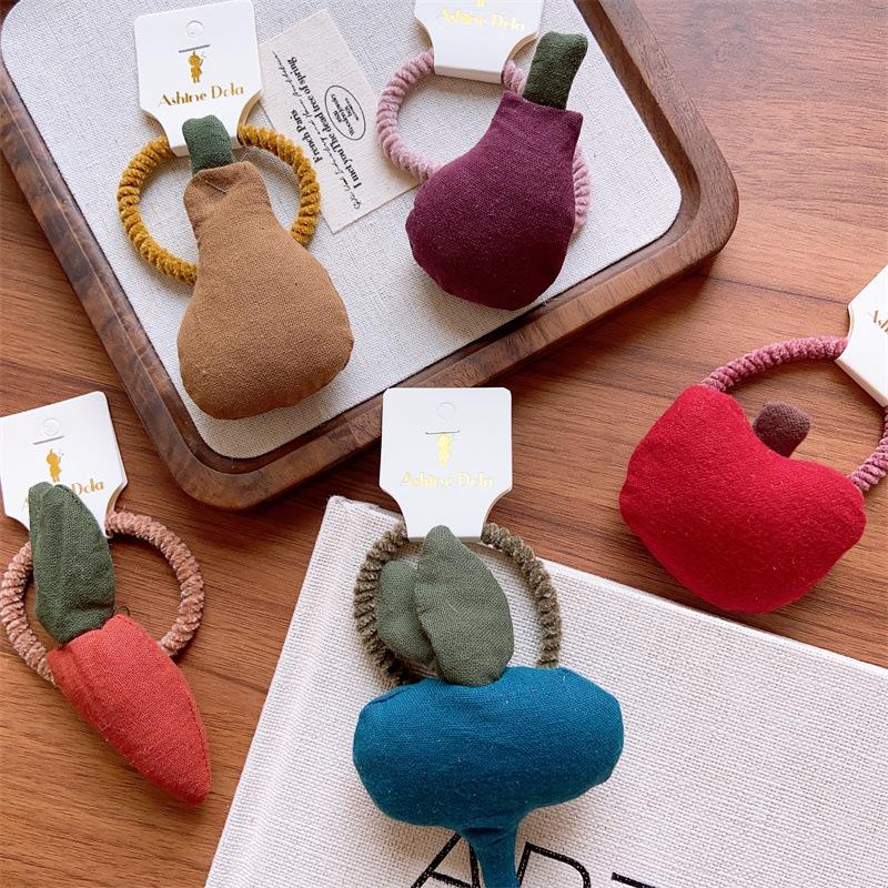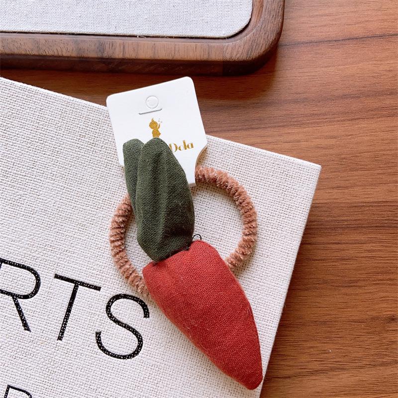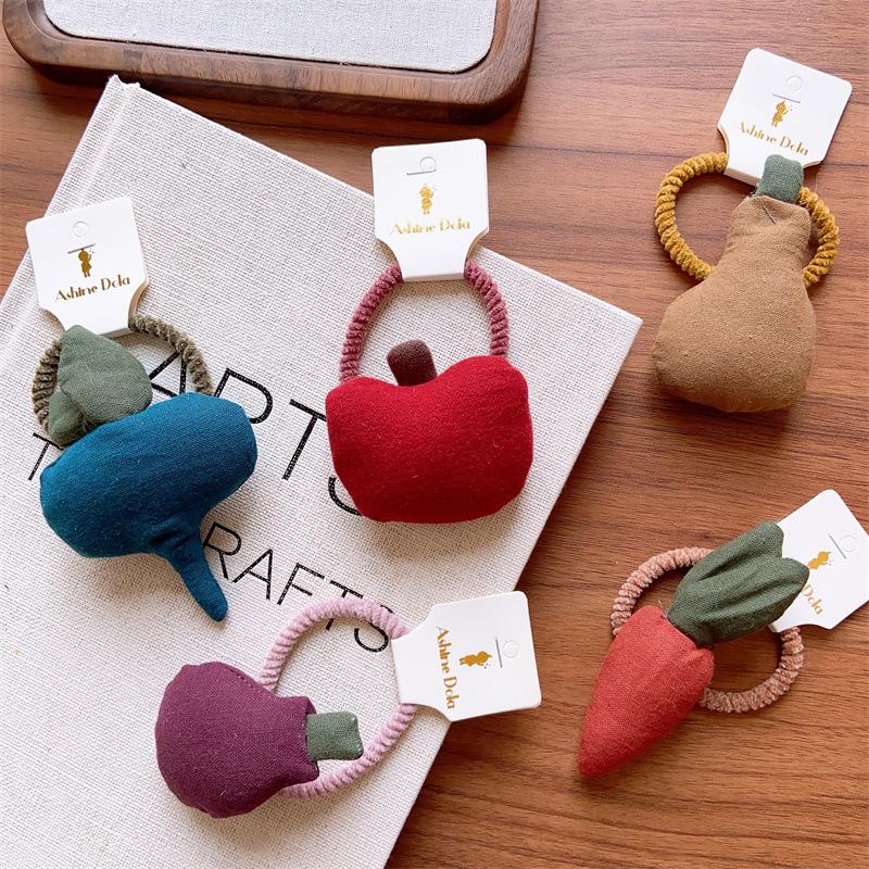 Compra Anillo para el pelo de oso de zanahoria de tela acolchada de algodón oscuro de principios de otoño para niñas, linda cola de caballo con cuerda para la cabeza lateral con frutas y verduras al por mayor en Joom.pro