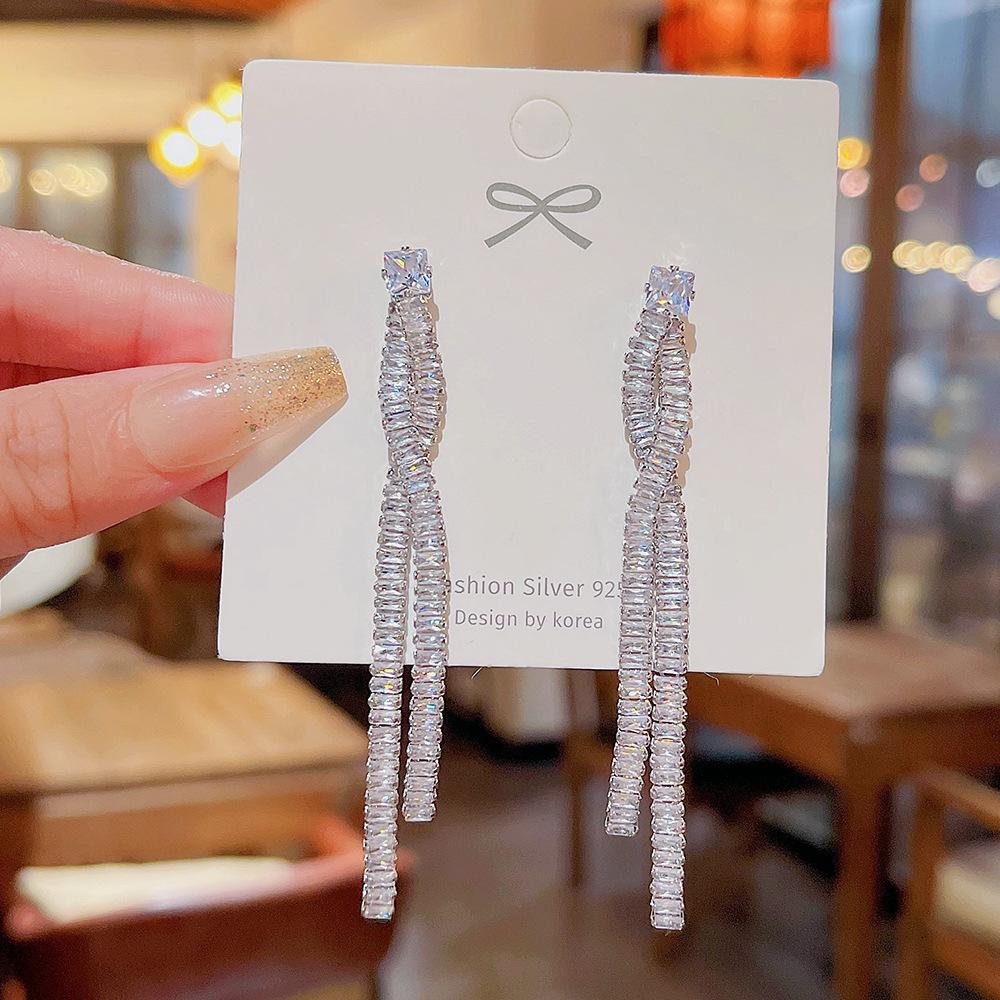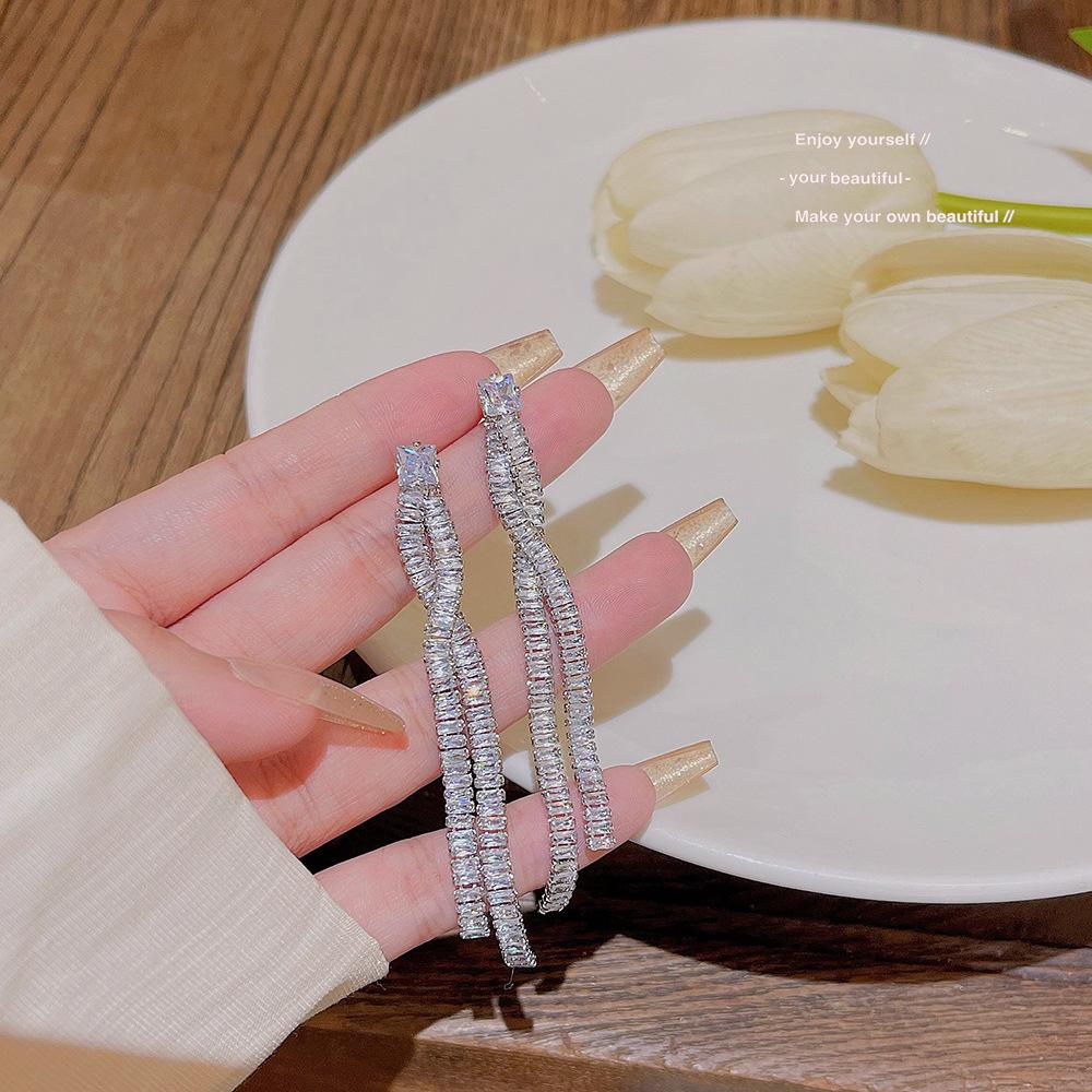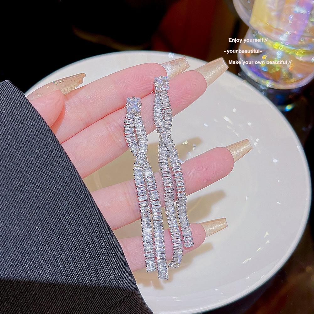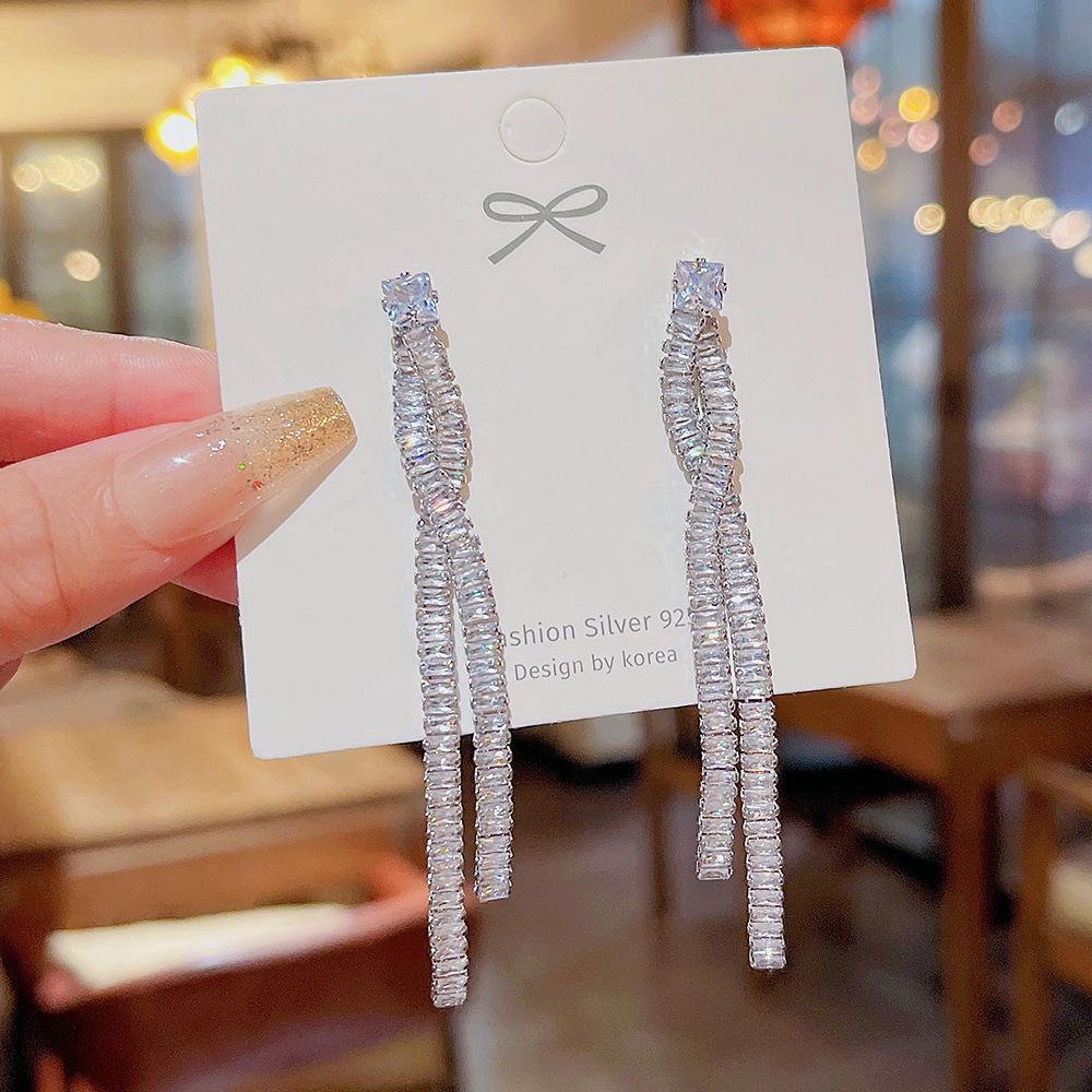 Pendientes de circonita de estilo coreano, de lujo, de alta gama, con un toque veraniego, elegantes y con aguja plateada.