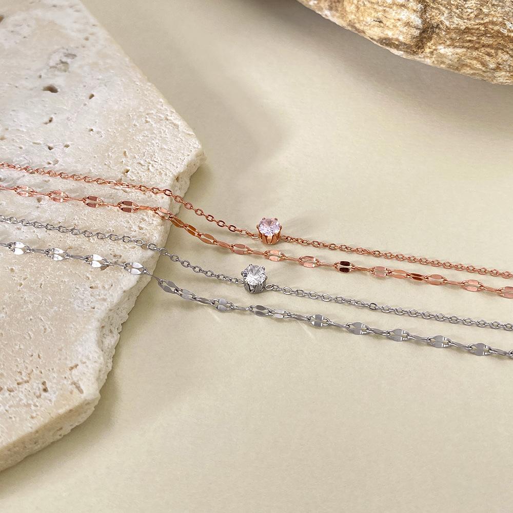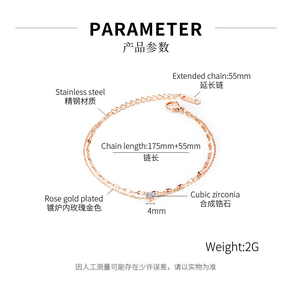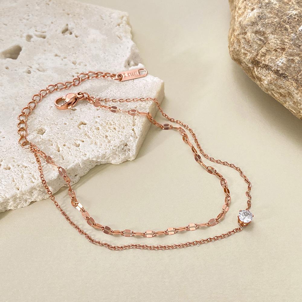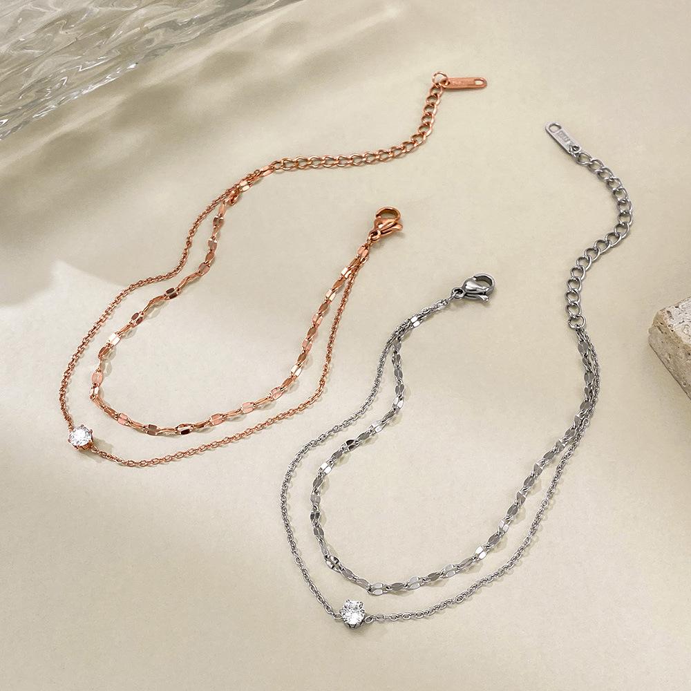 Pulsera de moda compacta de doble capa de acero inoxidable con un solo diamante de suministro transfronterizo, pulsera de acero titanio chapada en oro rosa para damas