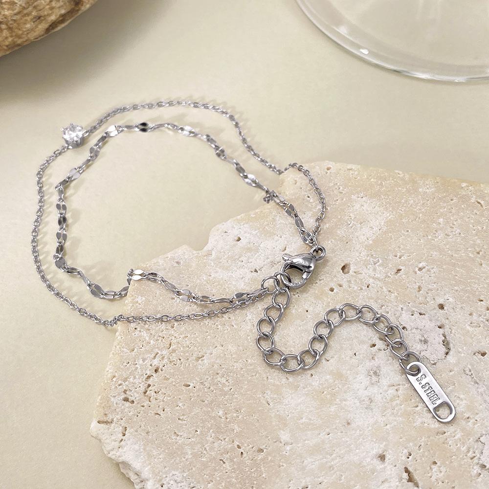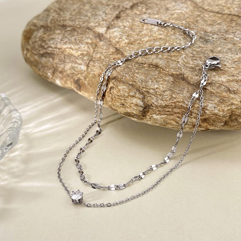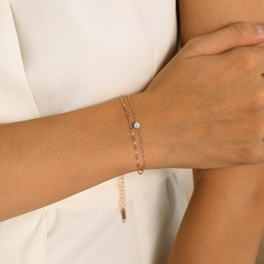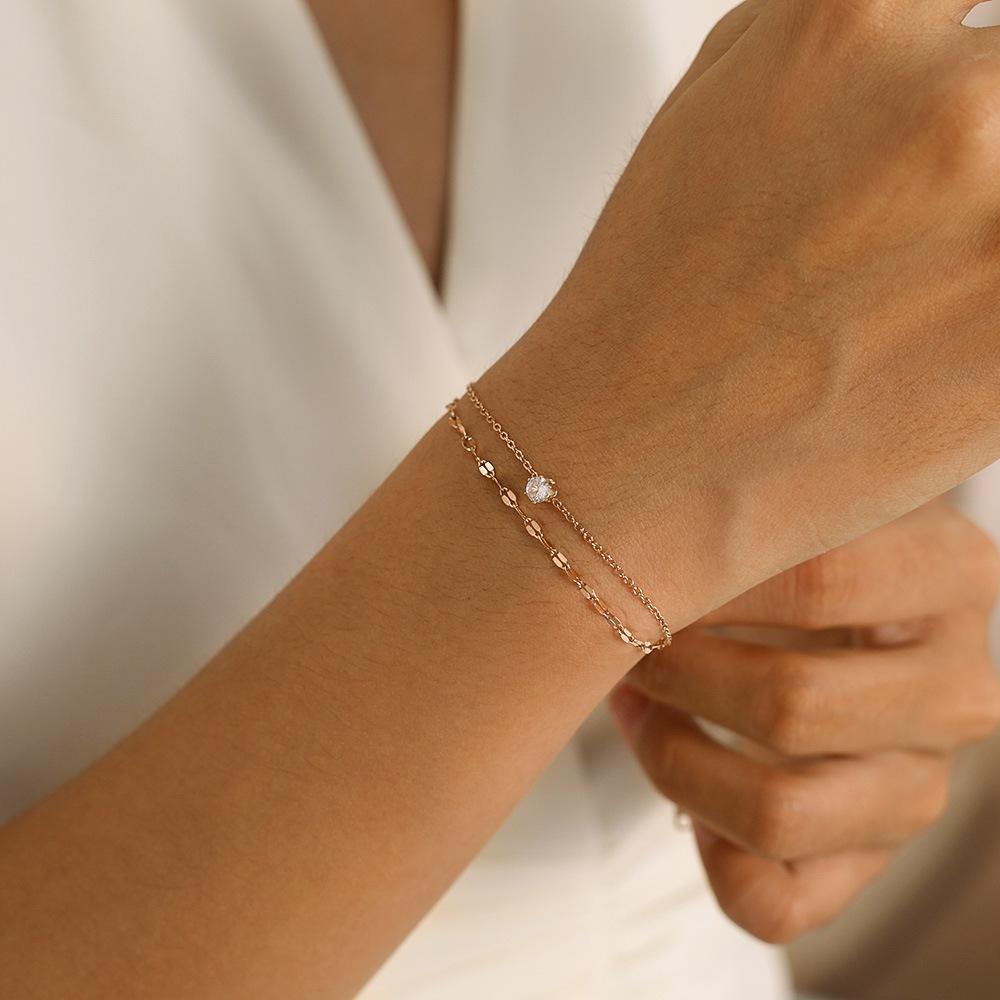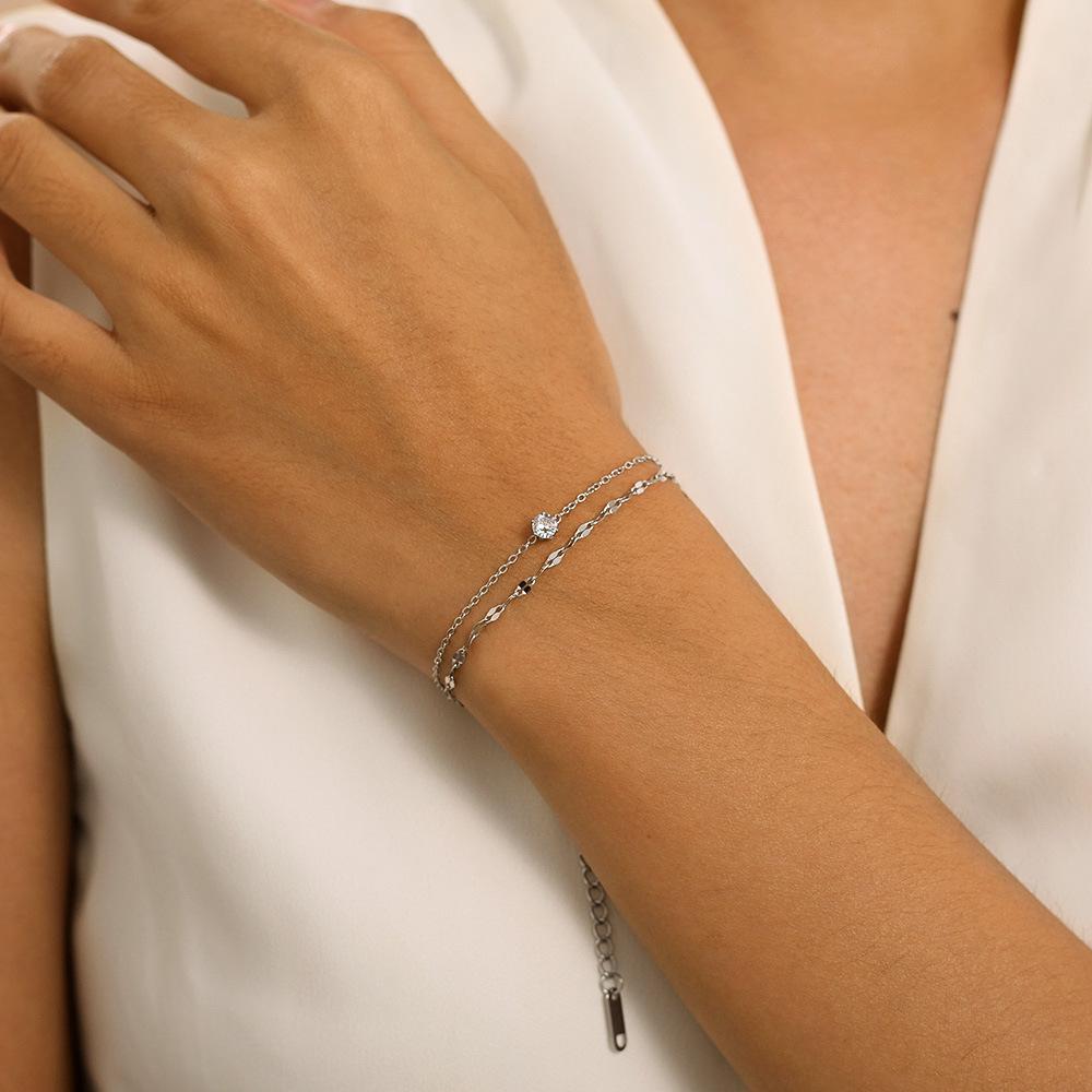 Pulsera de moda compacta de doble capa de acero inoxidable con un solo diamante de suministro transfronterizo, pulsera de acero titanio chapada en oro rosa para damas
