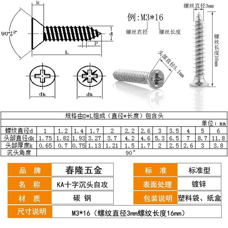 Ventas Directas de Fábrica Tornillos Autoperforantes de Cabeza Avellanada Cruzada Kam2-M4 Tornillos Autoperforantes de Cabeza Plana Tornillos de Cola Puntiaguda Tornillos de Punta