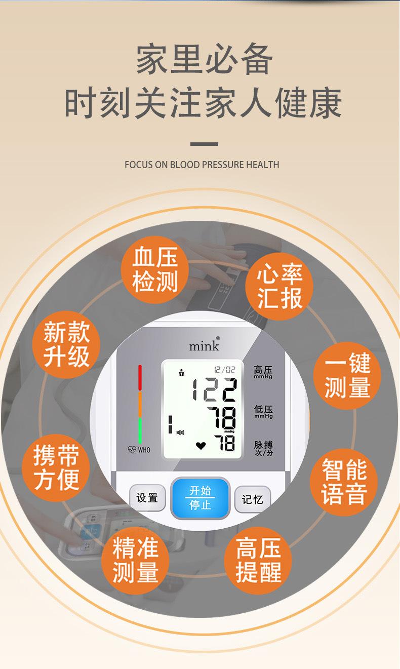 Tensiómetro electrónico de brazo de precisión de grado médico con voz china. Tensiómetro automático para el hogar.