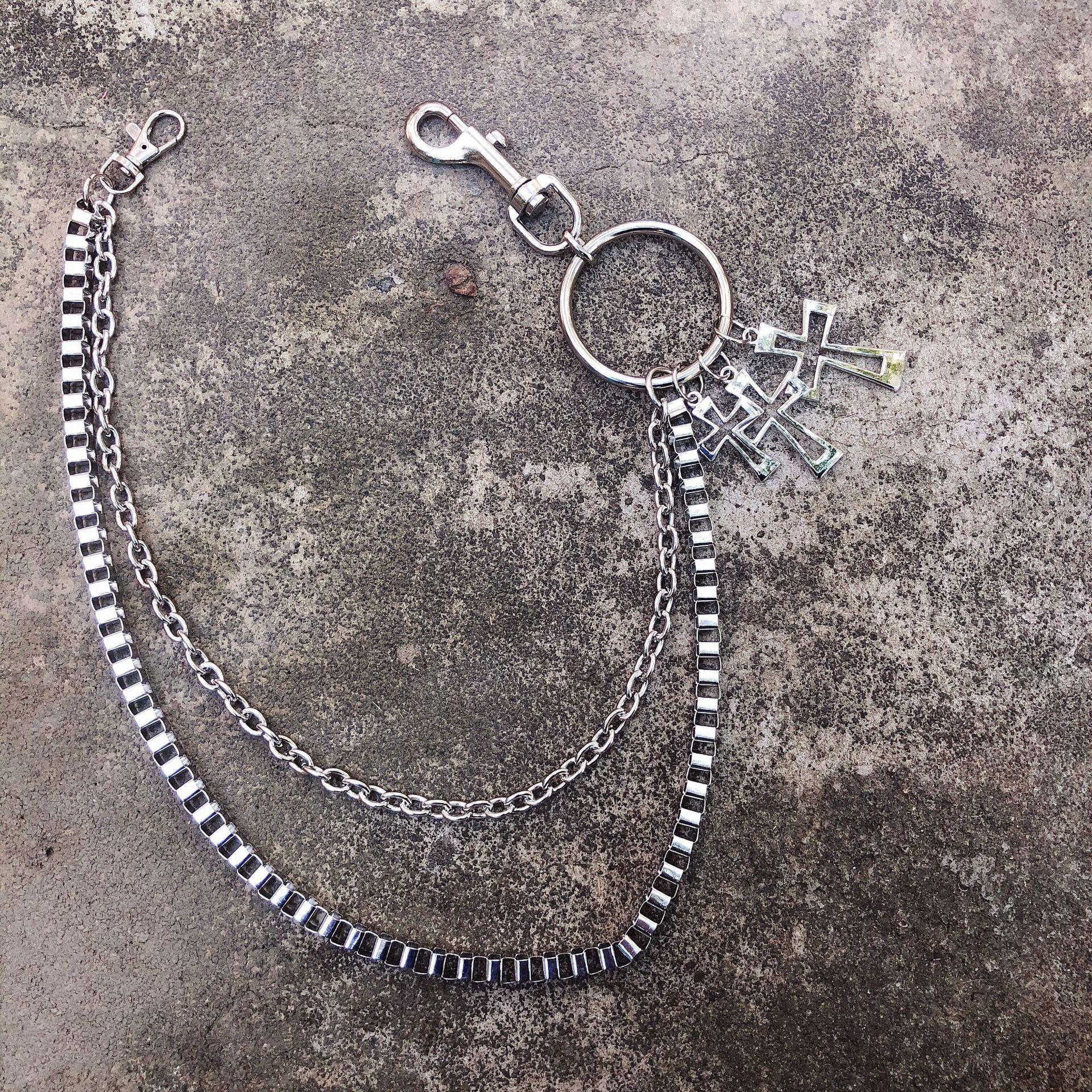 Una cadena para pantalones es un tipo de adorno que se cuelga en los vaqueros, popular entre las personas nacidas en los años 80 y 90, y que se introdujo desde Japón y Corea del Sur. Al principio, solo era popular entre quienes amaban Corea y Japón, pero con el tiempo se popularizó entre los jóvenes a la moda. Cadena para pantalones: una cadena que cuelga de los pantalones.