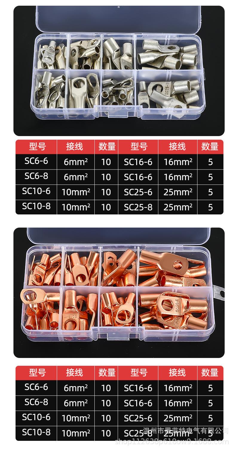 Terminal de cobre SC, 60 piezas, caja de terminales de cobre, 6-25 terminales cuadrados, herramienta de combinación, venta caliente transfronteriza