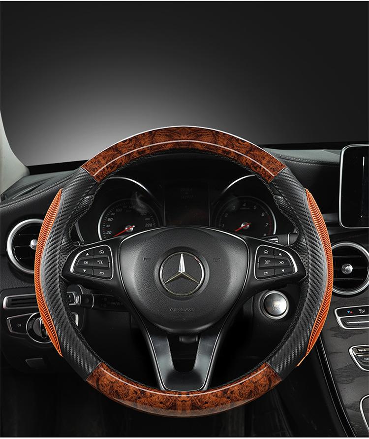 Funda para volante de coche, disponible para las cuatro estaciones, con veta de madera, transpirable, antideslizante, resistente al desgaste.