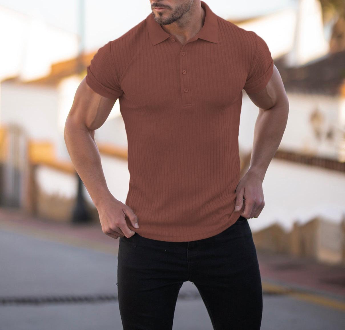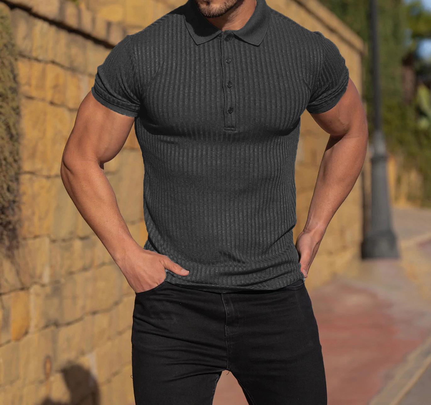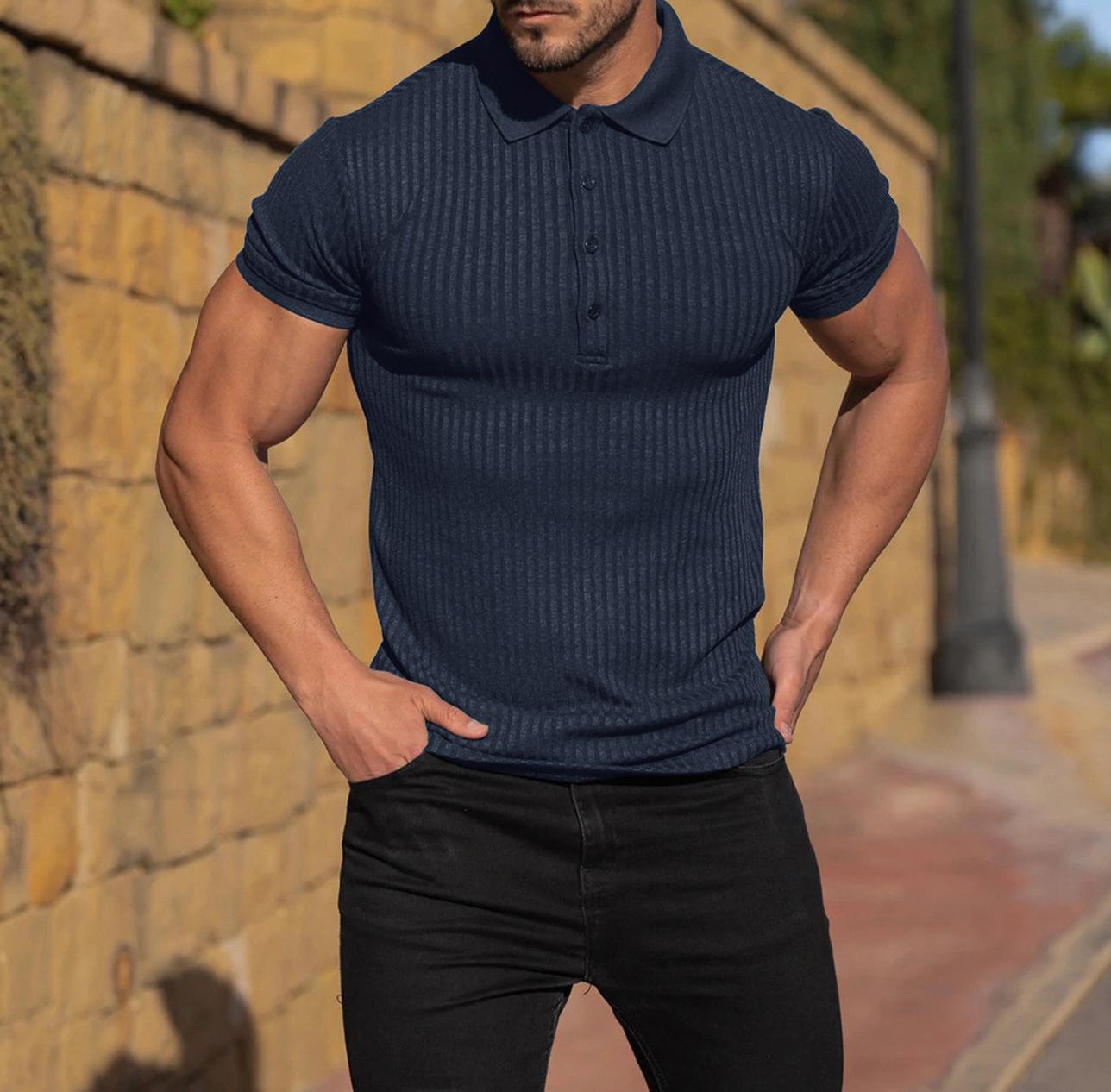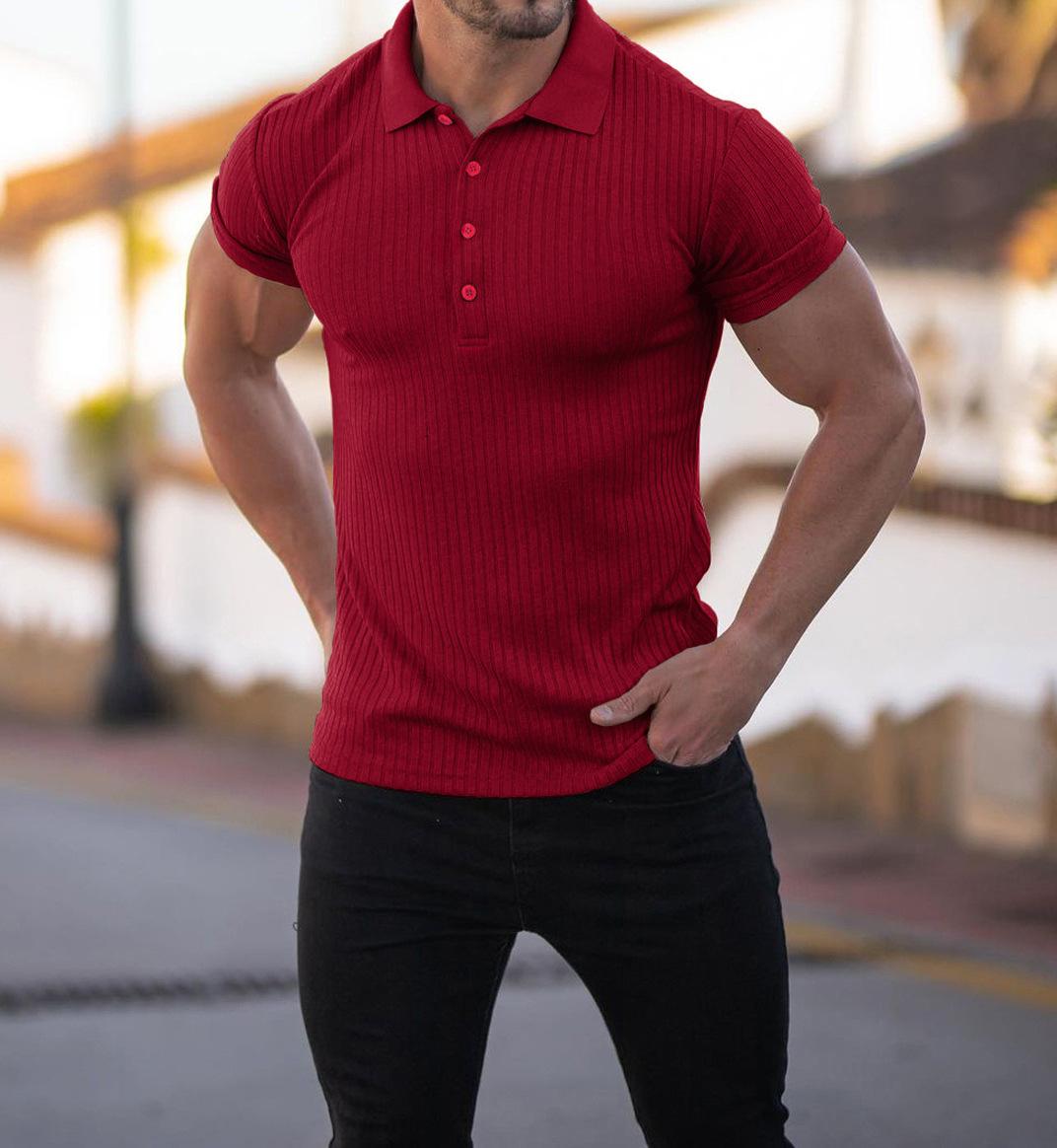 El comercio exterior transfronterizo entre Europa y Estados Unidos desea que los hombres de verano, deportes, fitness, ocio, camisa polo elástica vertical de manga corta para hombres