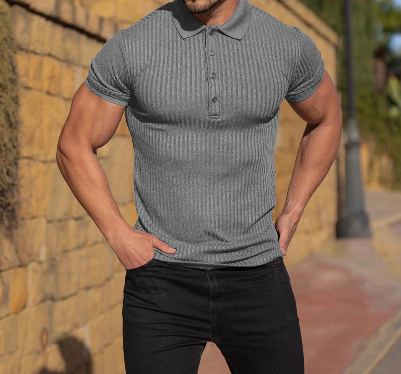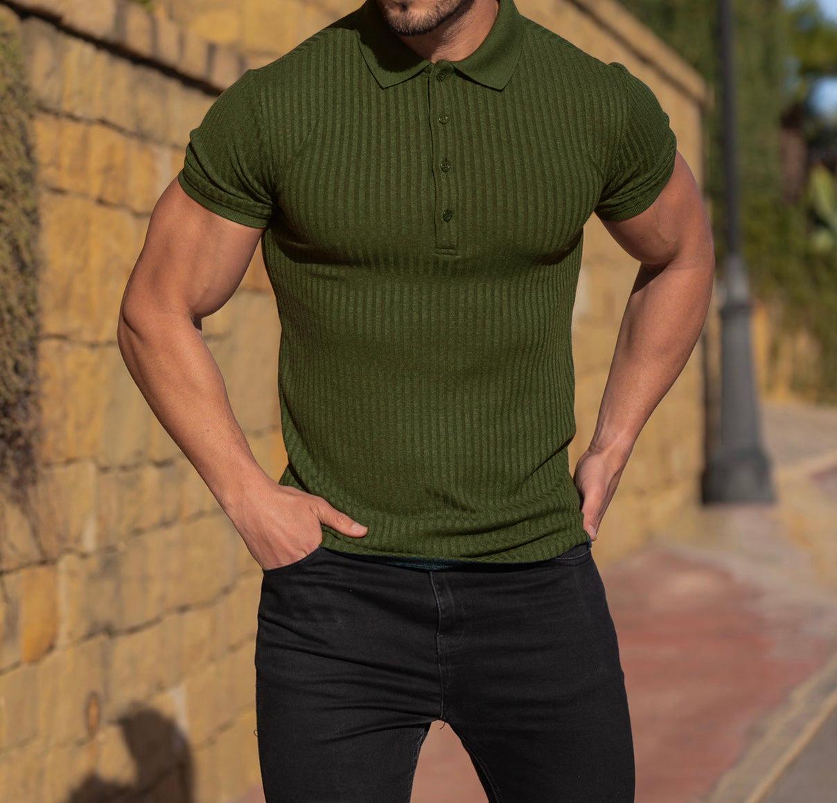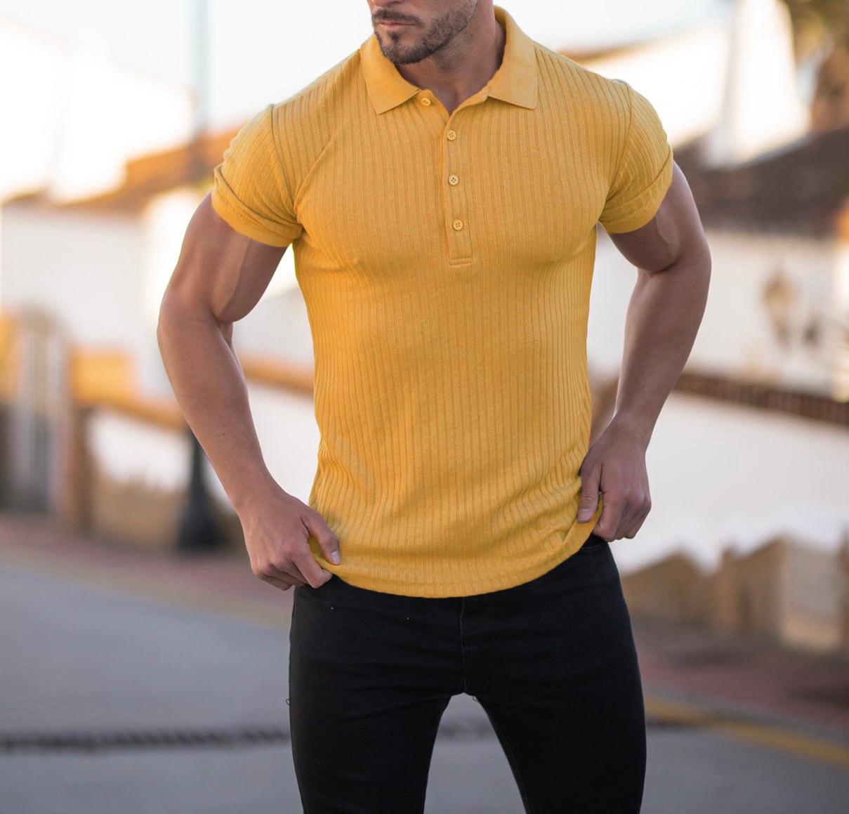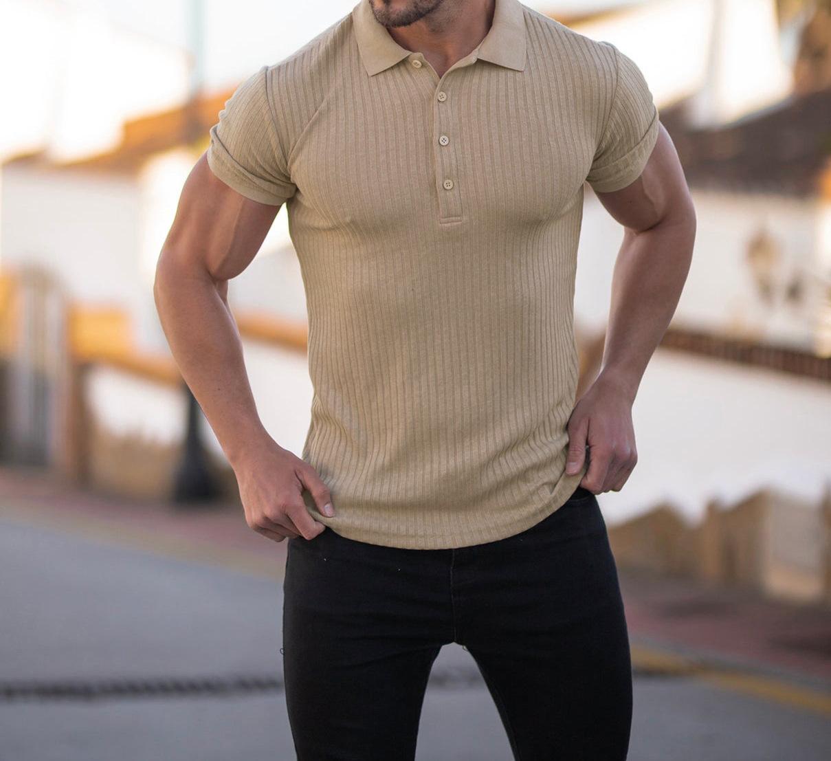 El comercio exterior transfronterizo entre Europa y Estados Unidos desea que los hombres de verano, deportes, fitness, ocio, camisa polo elástica vertical de manga corta para hombres