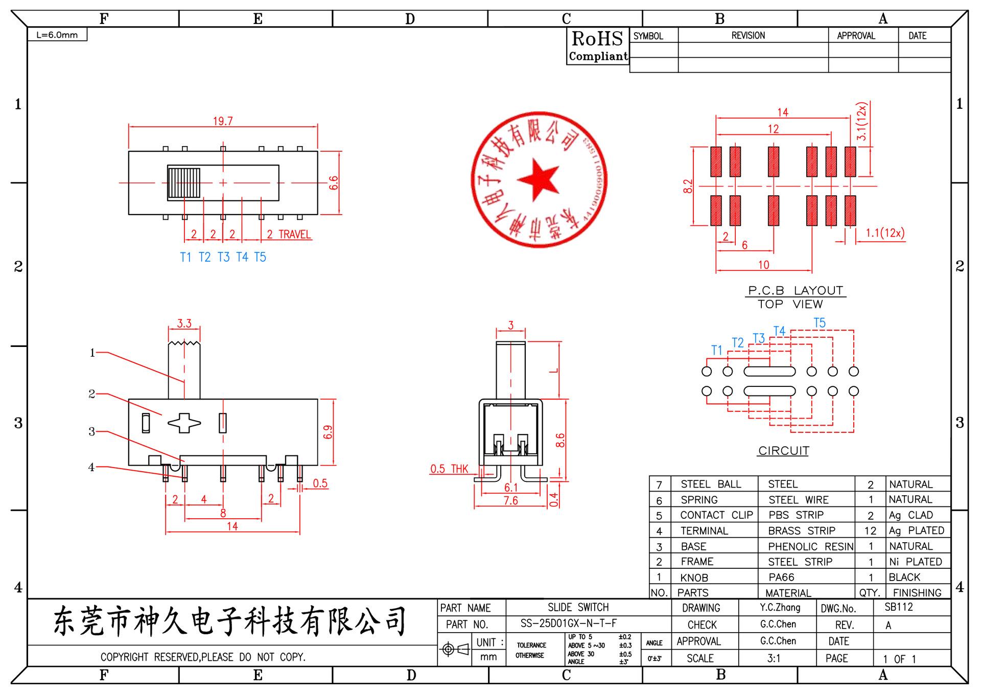 **Nombre del producto: Interruptor deslizante de alta corriente