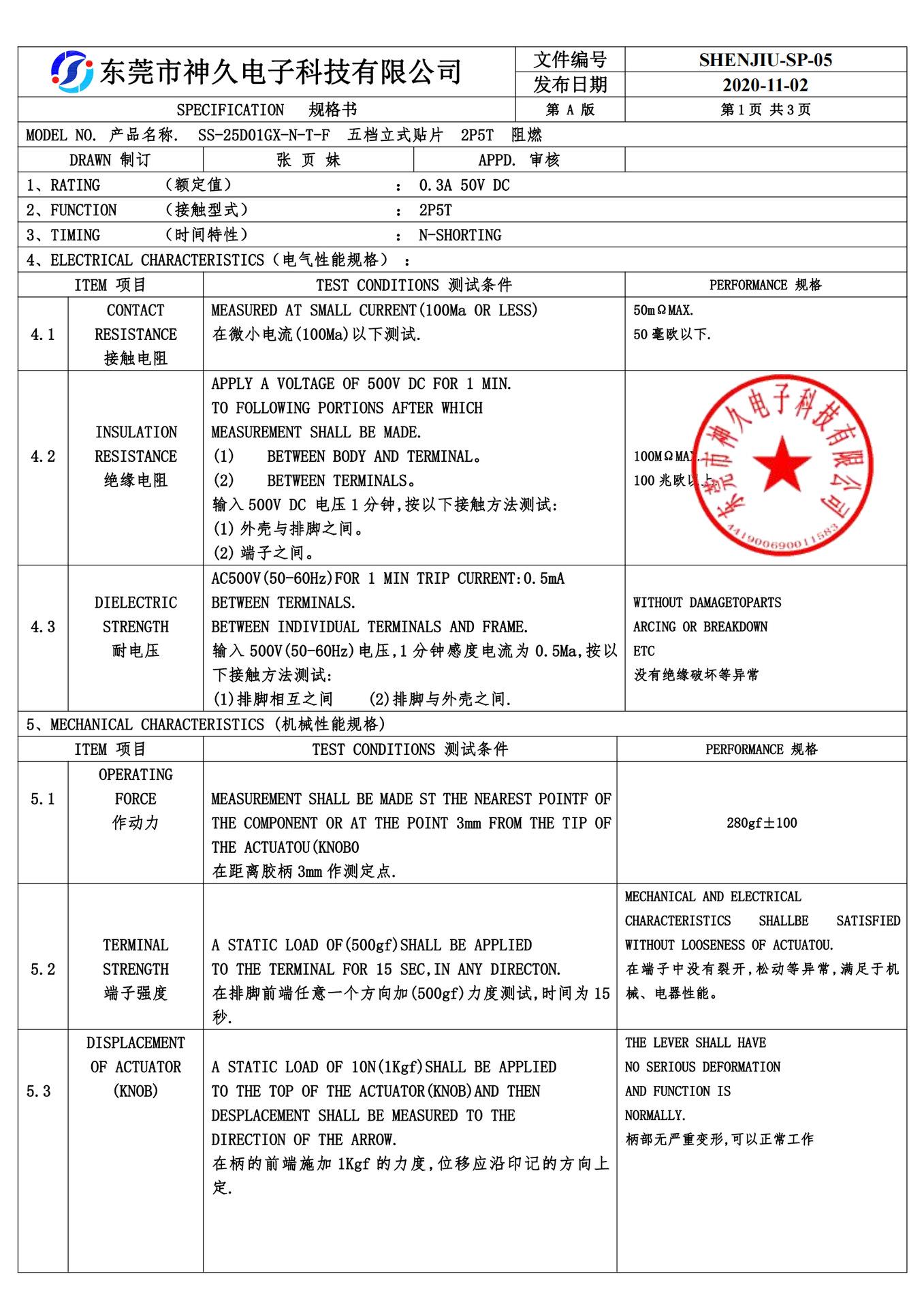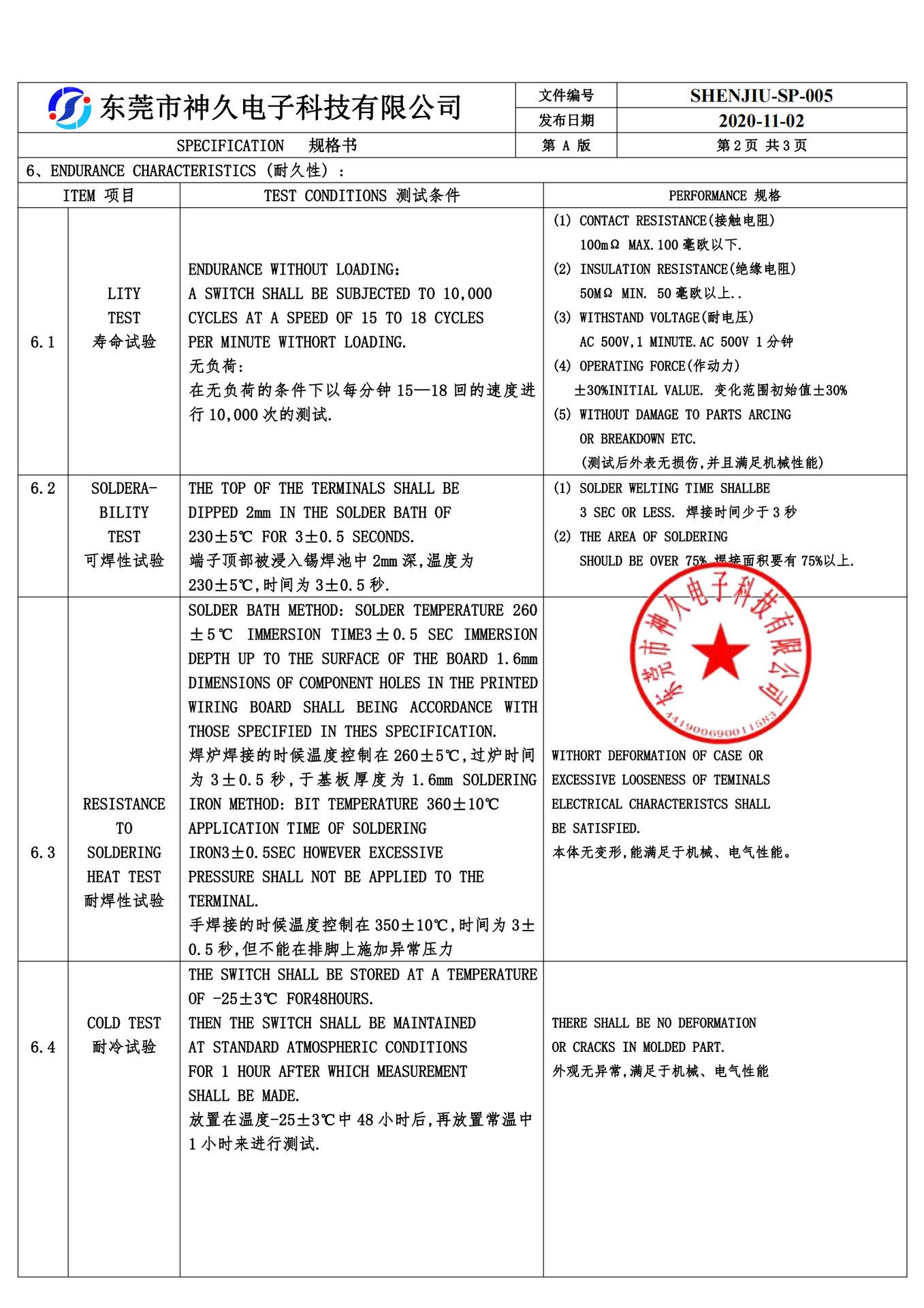 (1) La resistencia de contacto no puede superar los 200 mΩ (2) Otros, cumplen con los requisitos de rendimiento mecánico y eléctrico.