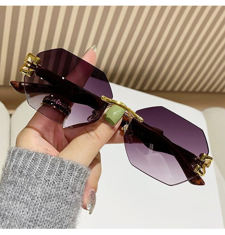 Gafas de borde cortado para mujer, sin montura, para cara redonda, anti-ultravioleta, conducción avanzada, moda, sombra genuina, color degradado, gafas de sol |