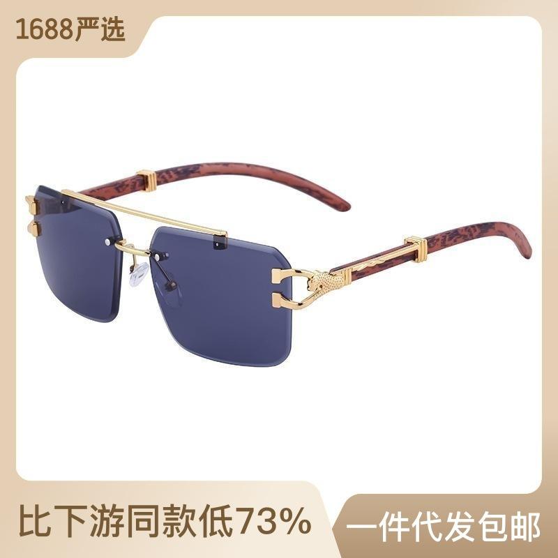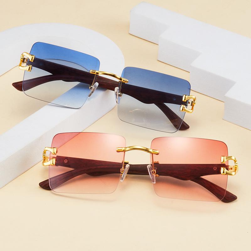 Nuevas Gafas de Sol para Hombre Personalidad Guepardo Retro Sin Montura Patillas Espejo Grano de Madera Montura Cuadrada Gafas de Sol para Mujer Color Degradado Lote Transfronterizo |