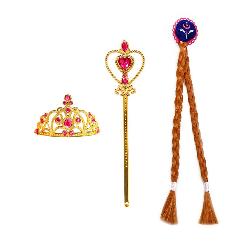 2023 joyería congelada Aisha tocado para niños accesorios para el cabello femenino corona peluca trenza varita mágica traje de tres piezas