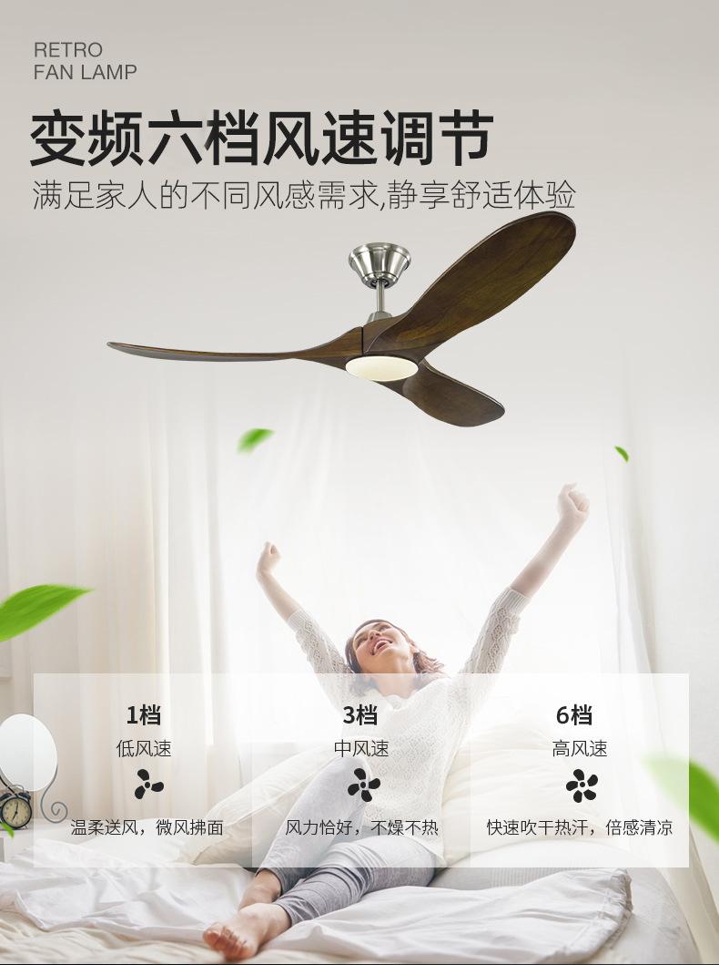 Ventilador de techo de madera maciza de 60 pulgadas con control remoto, lámpara colgante para sala de estar, comedor y hogar, conversión de frecuencia, nogal americano
