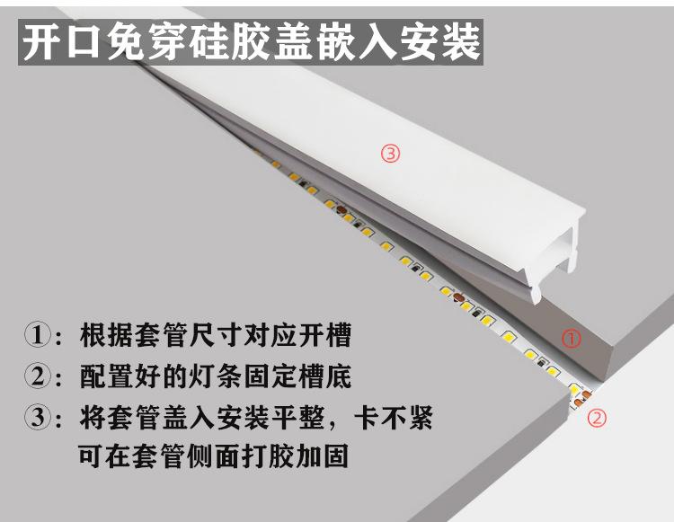 Lámpara LED con funda de silicona sin desgaste y tira de cubierta, lámpara lineal de montaje abierto, lámpara de línea flexible, lámpara de ranura empotrada