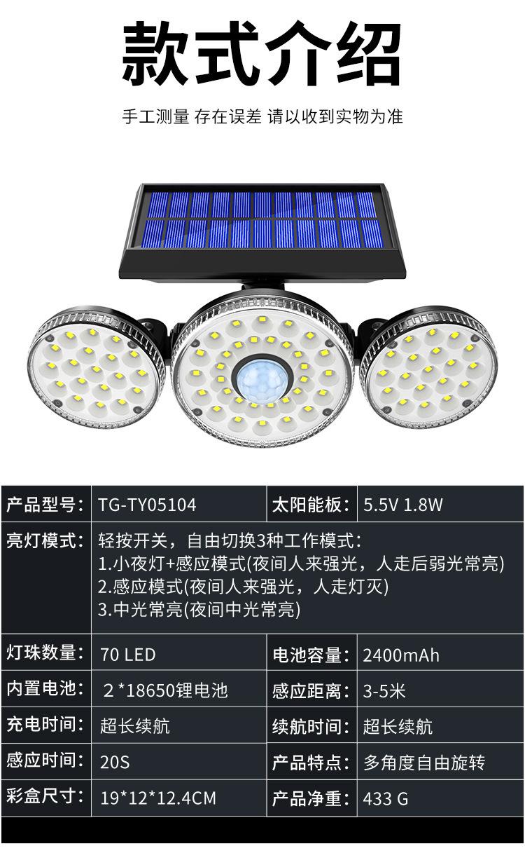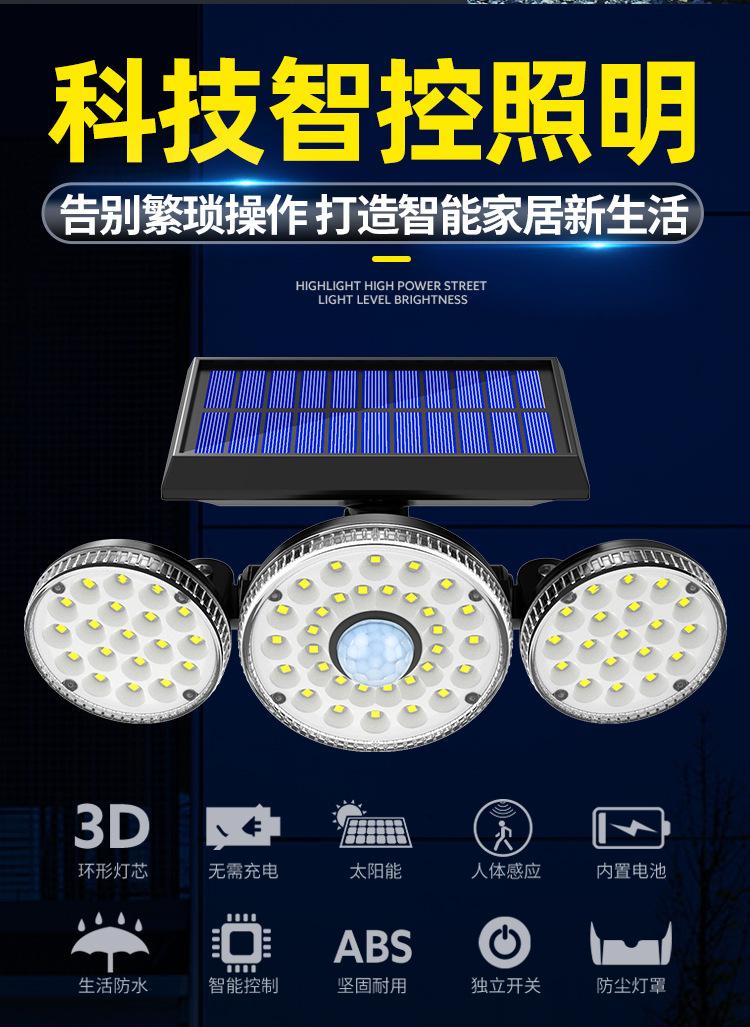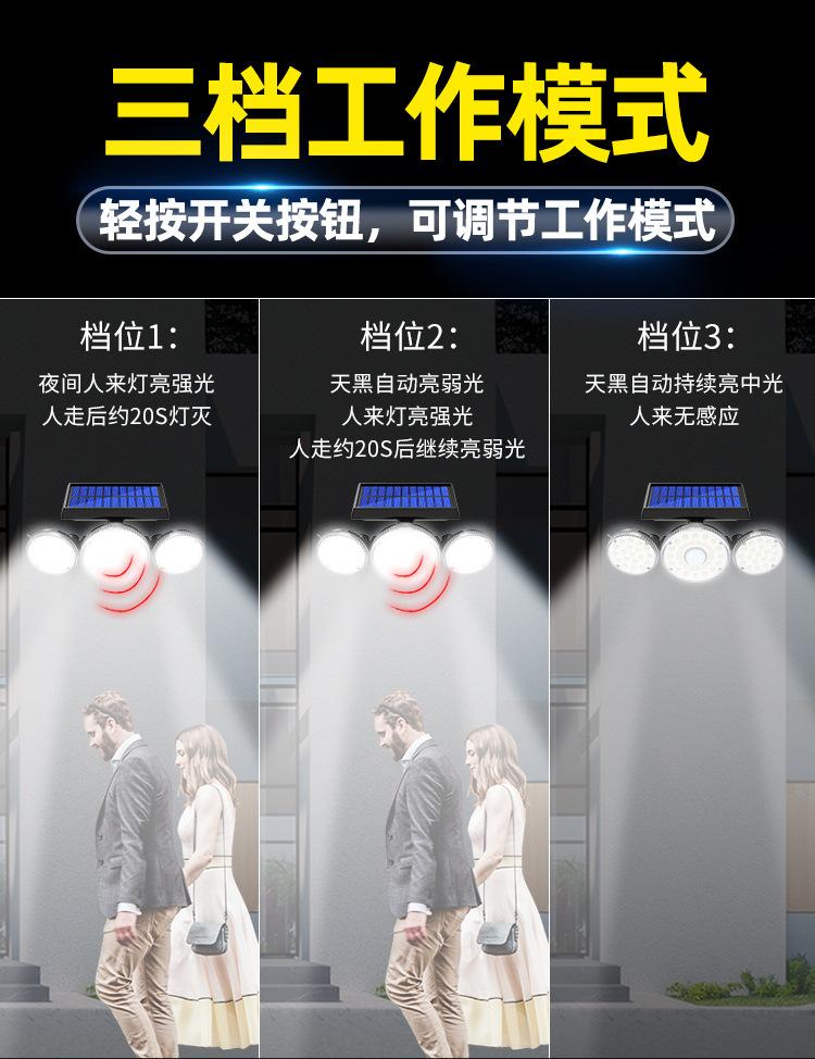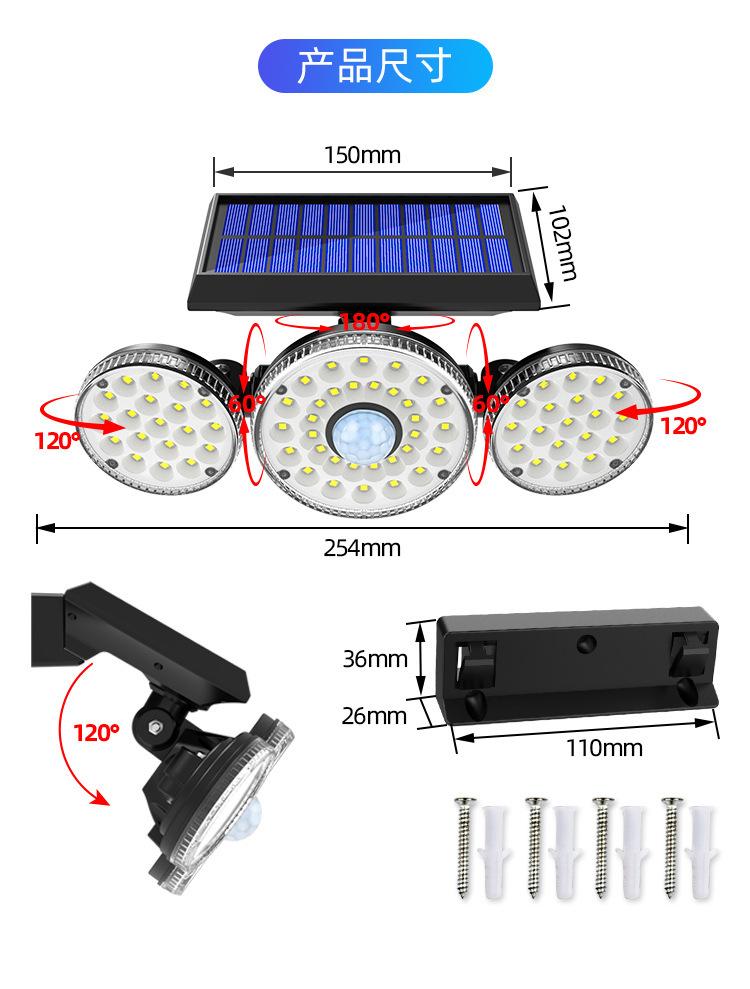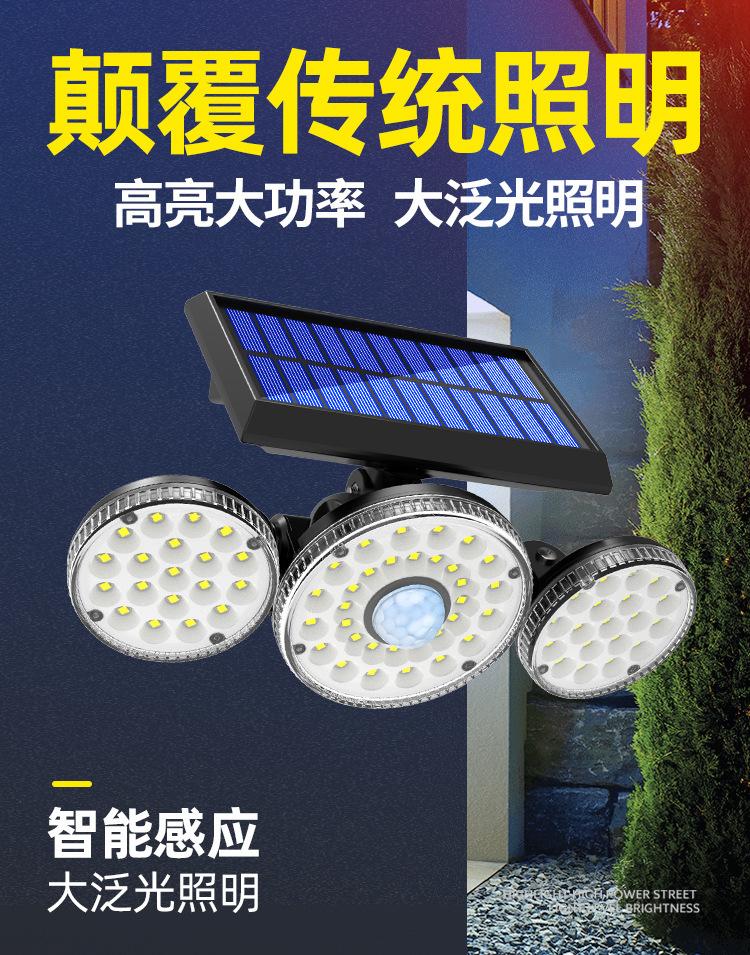 [Nombre del producto]: Lámpara de pared solar de tres cabezales