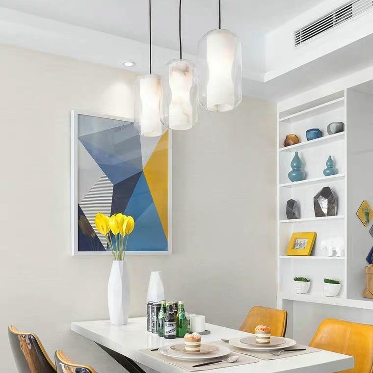 Lámpara de araña pequeña minimalista posmoderna para comedor, lámpara de araña nórdica minimalista de un solo cabezal para dormitorio, lámpara de araña de lujo para mesita de noche de piedra