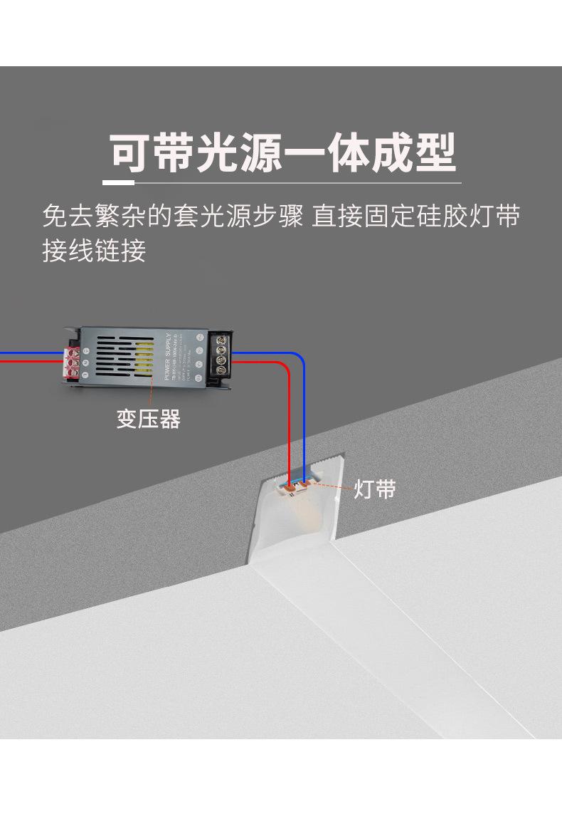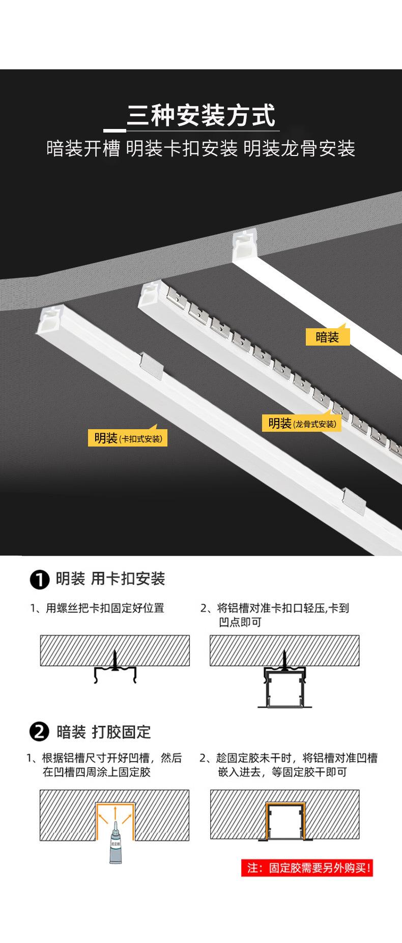 Para la instalación empotrada, pegue la tira de luz LED de silicona integrada (los clientes proporcionan su propio pegamento).