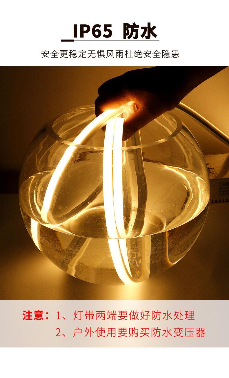 5. La tira de luz integrada de silicona es impermeable. Cuando se usa en un área húmeda, ambos extremos de la tira de luz y el transformador deben impermeabilizarse.