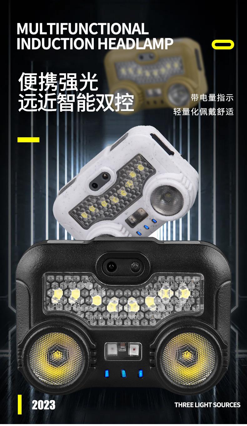 Nueva linterna frontal de alta potencia, carga rápida, súper brillante, montada en la cabeza, linterna de larga duración, lámpara de inducción para pesca nocturna al aire libre.