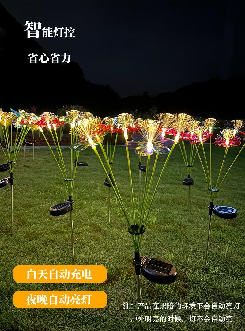 Luz Luminosa de Ambiente Navideño para Jardín Exterior Impermeable LED Solar de Fibra Mariposa Flor Luz de Estaca para Suelo Venta al por Mayor