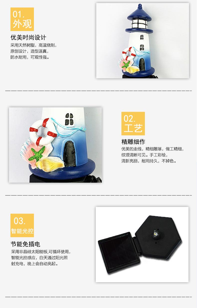 Lámpara de faro marino de resina solar transfronteriza para jardín, lámpara de césped para exteriores, creativa, luminosa, decorativa, luz nocturna para patio