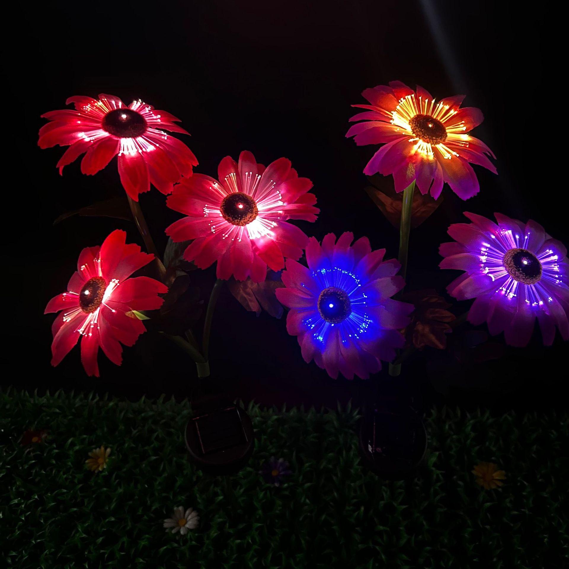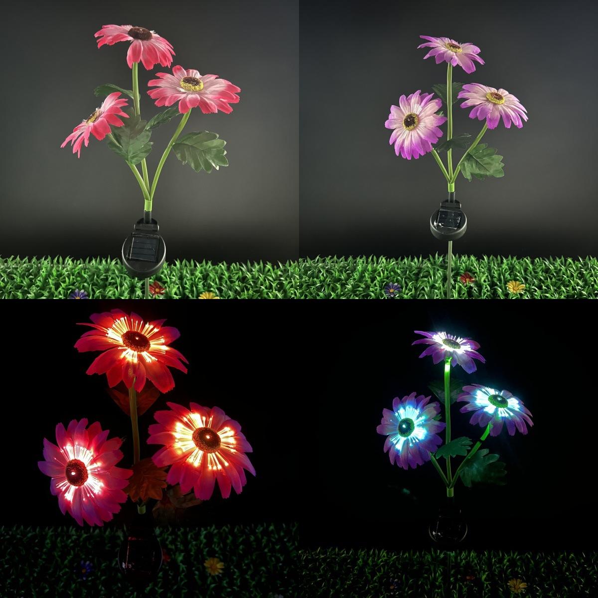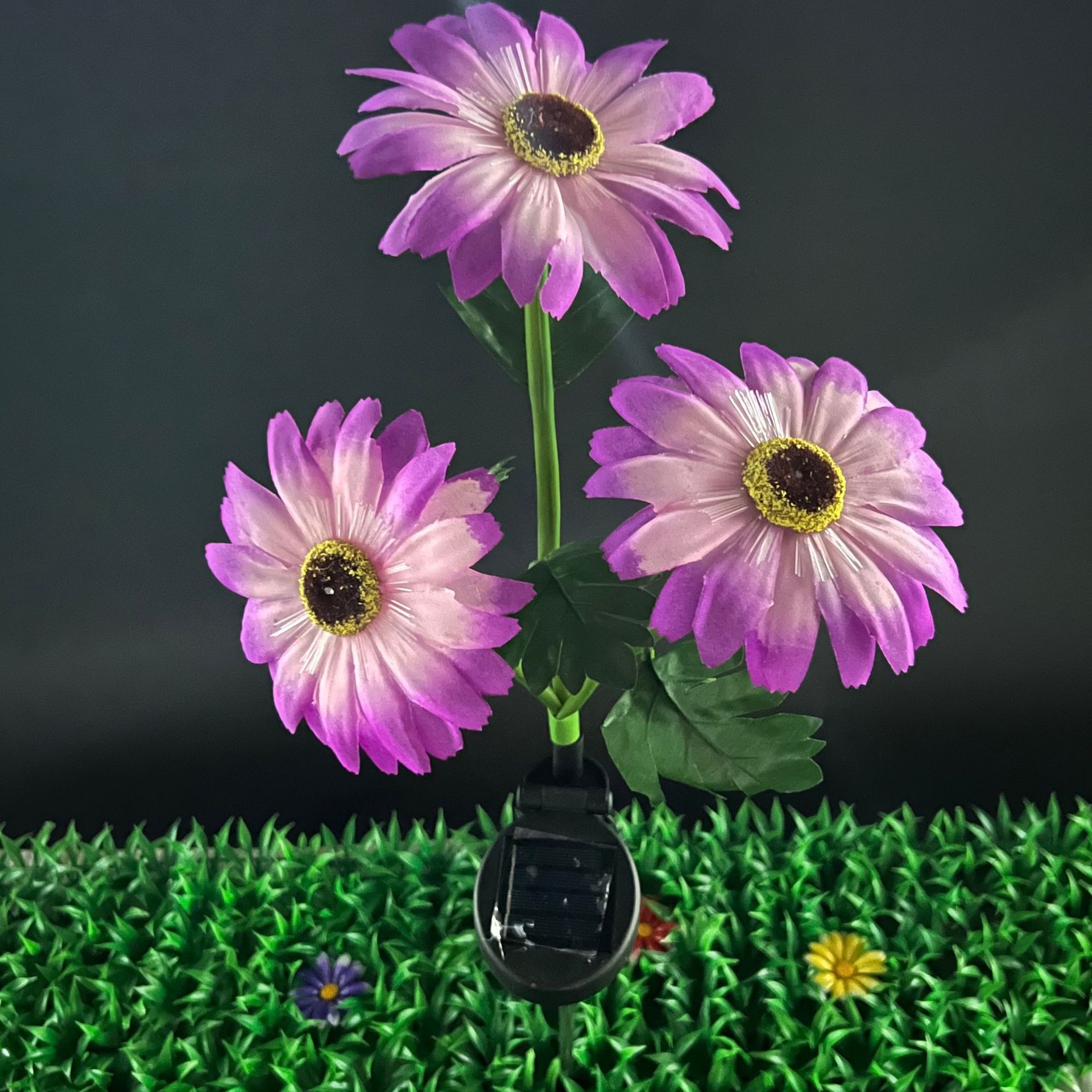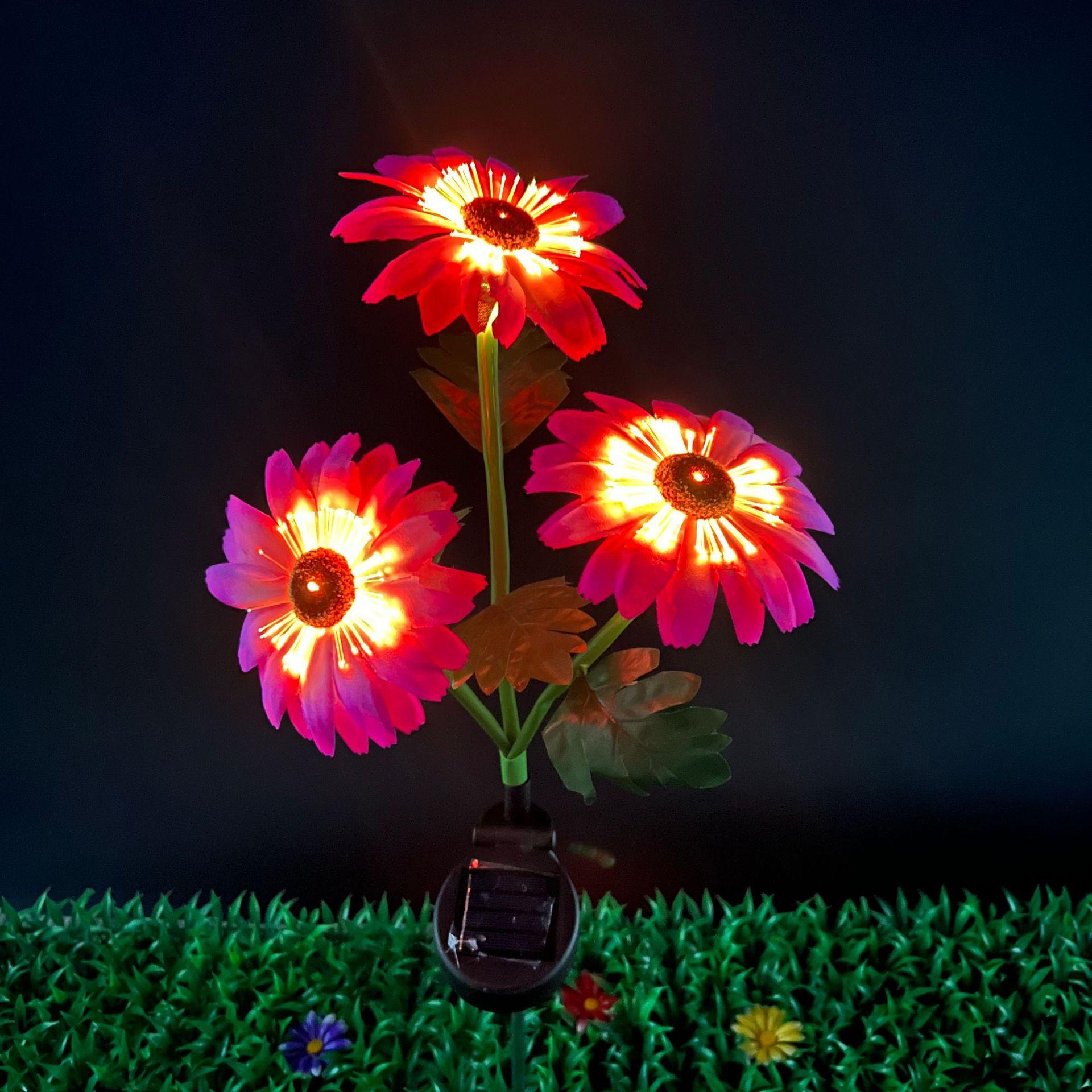 Lámpara de girasol de 3 cabezas de simulación, lámpara decorativa para jardín, lámpara de pie para exteriores, impermeable, para paisaje de jardín