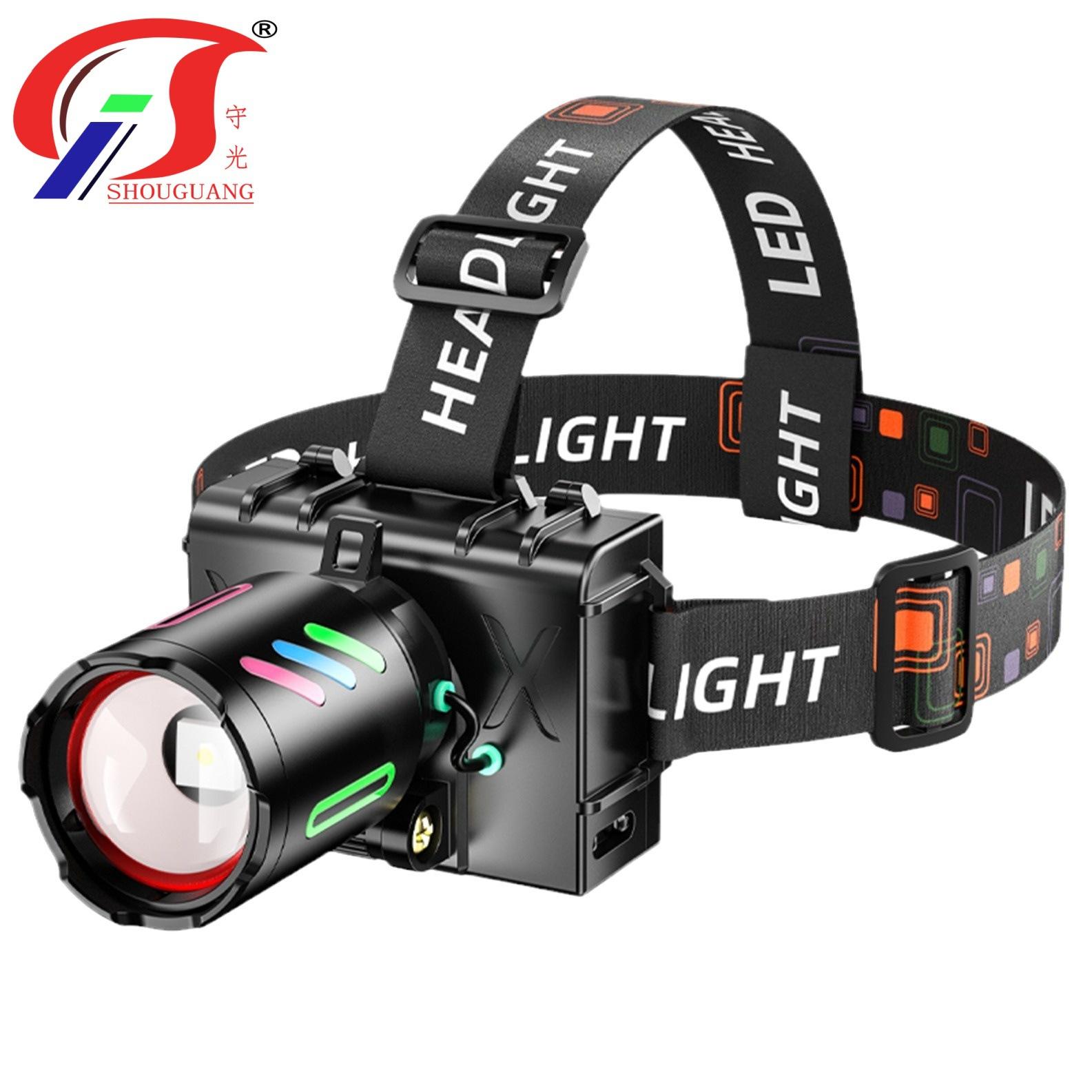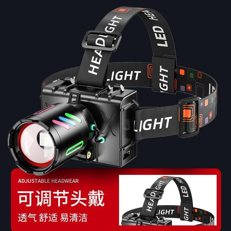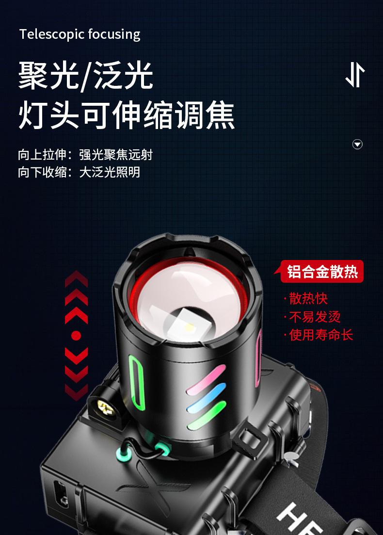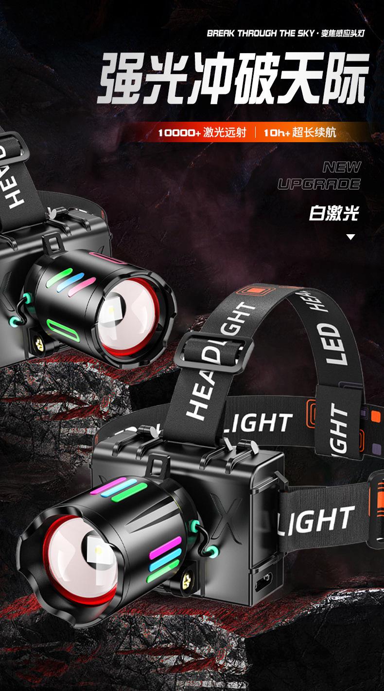 Faro de inducción superbrillante de aleación de aluminio colorida de largo alcance para camping, lámpara de trabajo, lámpara de minero, lámpara de pesca, faro impermeable para exteriores