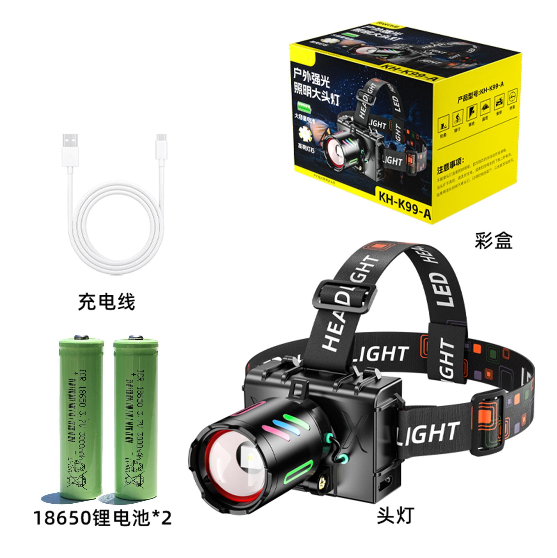 A complete set of headlights (excluding batteries), Headlamp a set of 2*18650 batteries