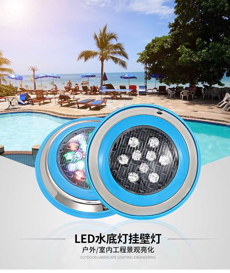 Luz de piscina al por mayor, luz de pared subacuática de montaje abierto, luz LED de pared subacuática colorida para exteriores, iluminación para estanque de peces y piscina